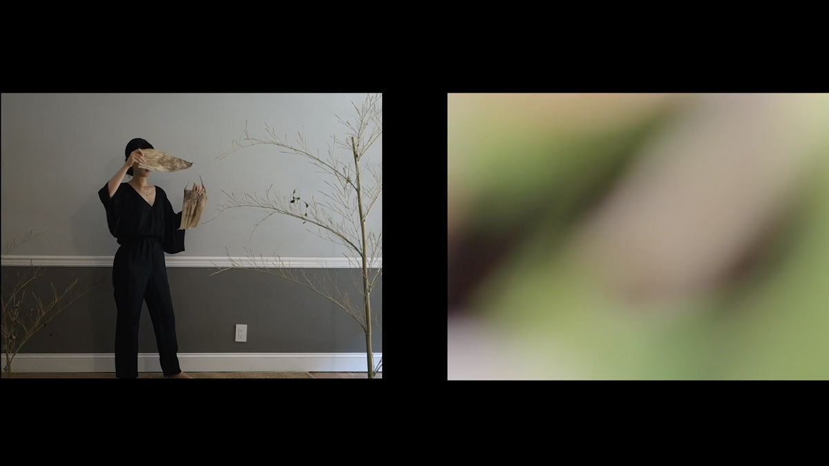 Quỳnh Lâm vốn đã được biết đến với những thí nghiệm xử lý thực vật vừa như đối tượng, vừa như phương tiện sáng tạo bao gồm sắp đặt, trình diễn và các tác phẩm hai chiều nên việc nghệ sỹ sử dụng hoa mẫu đơn và thân cây tre ở đây cũng không có gì đáng ngạc nhiên. Điểm đặc biệt là, chính những giới hạn về tư liệu sáng tác trong giai đoạn phong tỏa giãn cách đã được chuyển thành một tổ hợp phương tiện thú vị: hoa và cây tìm được trong khu vực cách ly, những tư liệu địa lý-lịch sử trực tuyến, và màn trình diễn tự thân. Trong quá trình mày mò với những giới hạn đó, có lẽ nghệ sỹ đã tự tìm được cho mình những câu trả lời cần thiết về bản sắc bị dịch dời.