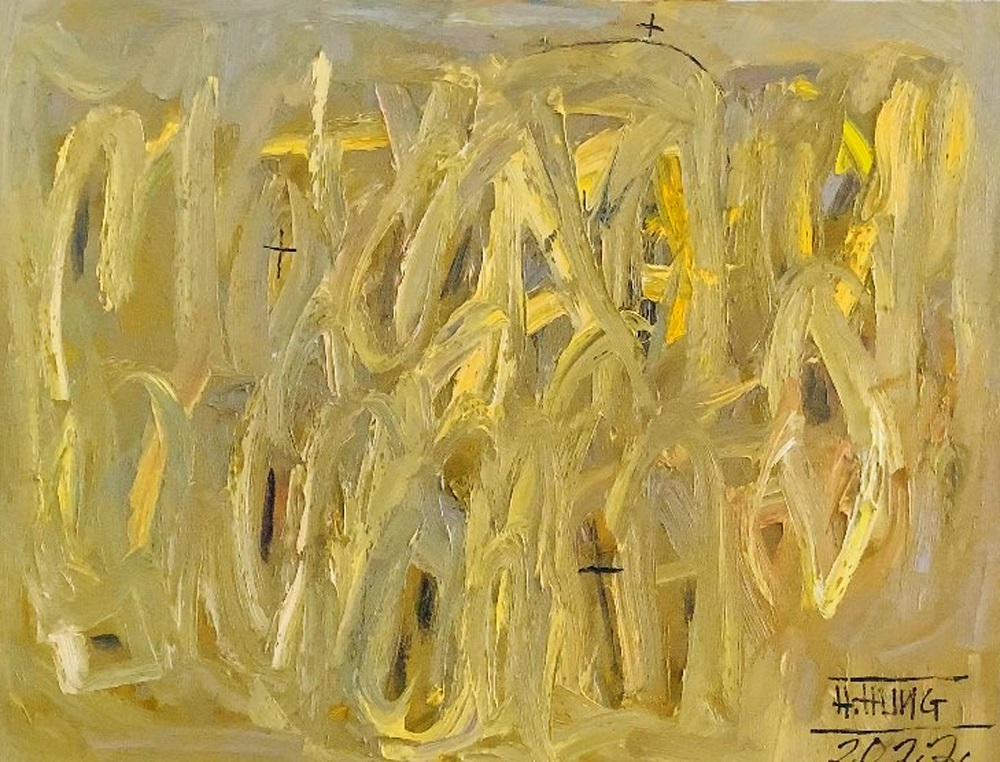 Thơ Haiku nhìn dễ mà khó, vì đòi hỏi sự cô đọng và chắt lọc đến bậc thầy. Hội họa tối giản cũng vậy. Để tối giản là một sự cô đọng của bút pháp và tâm hồn một cách tự nhiên và sâu sắc. Như bức “Gió thổi xạc xào” trên của Hà Hùng, những nguệch ngoạc tưởng chừng vô thức vậy thôi mà tạo ra được tính động – tính đưa của gió mới tài tình làm sao.