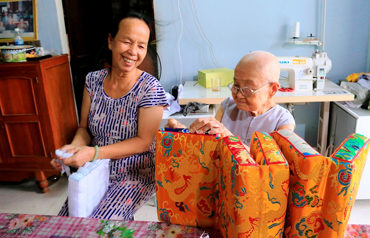 Cô Liền học nghề làm gối với Mệ Trí Huệ (2019). Nguồn ảnh_ Nhật Linh JPG