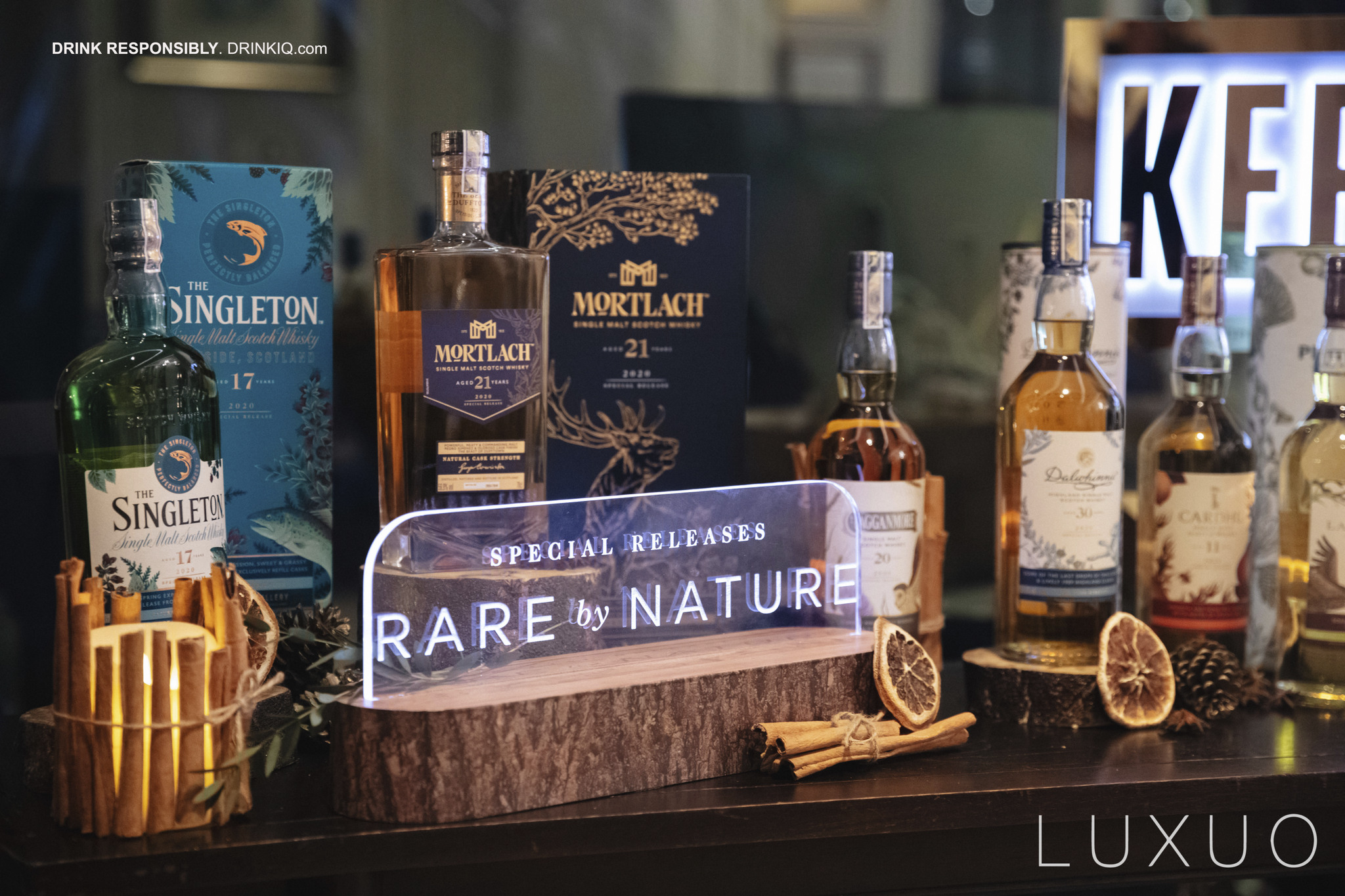 Đồng điệu với tên gọi triển lãm “Xúc cảnh”, bộ sưu tập whisky mang tinh thần RARE BY NATURE (Tinh túy từ thiên nhiên), được tuyển chọn từ 8 nhà chưng cất lừng danh như Singleton, Mortlach, Dalwhinnie hay Pittyvaich là “ghost distillery”… với số lượng giới hạn trên toàn thế giới, chỉ xuất hiện một lần duy nhất và mang tính sưu tầm cao.