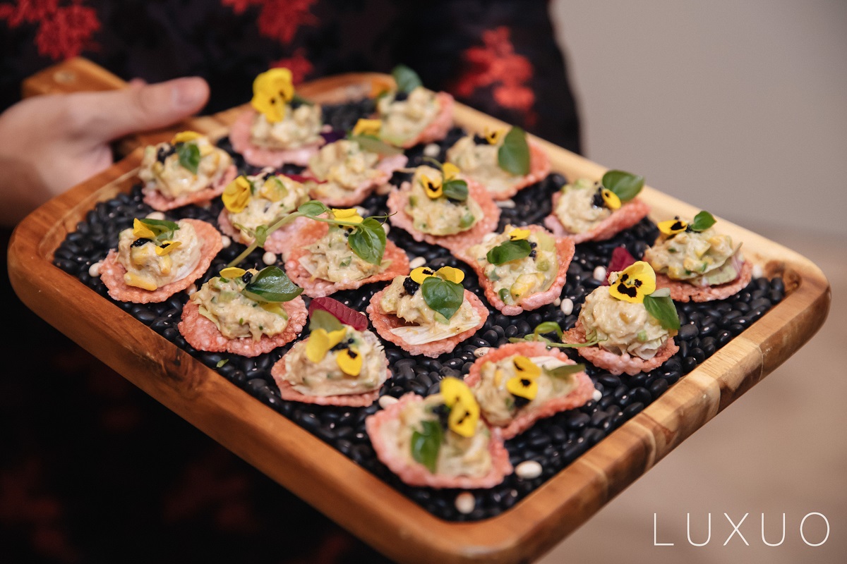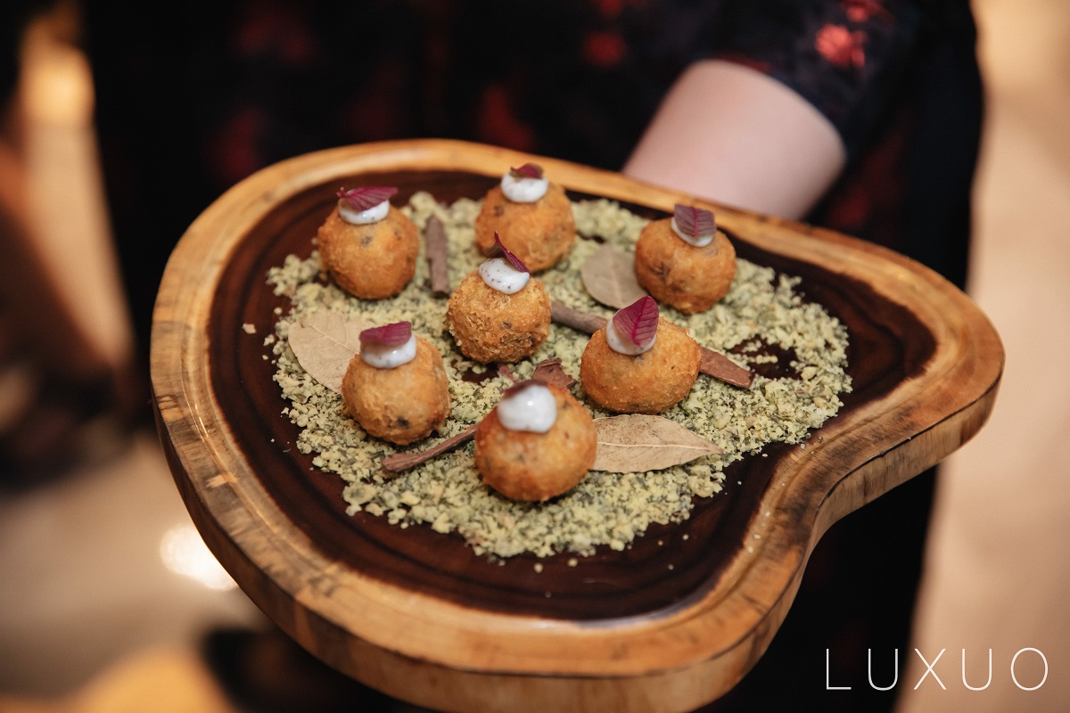 Bếp trưởng điều hành Angela Brown của khách sạn Hôtel des Arts Saigon – MGallery đã chuẩn bị một thực đơn đặc biệt cho sự kiện dựa trên tinh thần bộ sưu tập. Bên cạnh những nguyên liệu ngoại nhập như nấm truffle, Angela còn sử dụng những nguyên liệu hữu cơ từ những nguồn cung cấp trong nước như cua đồng, gạo lứt, hạt cacao nghiền vụn…, cùng cách bày trí hữu ý tạo nên hình ảnh mây trời, sông núi, những dải đất phù sa, hay nền đất đá gập ghềnh đặc thù của vùng đất miền Tây.