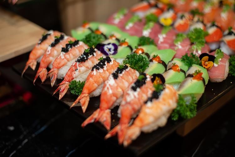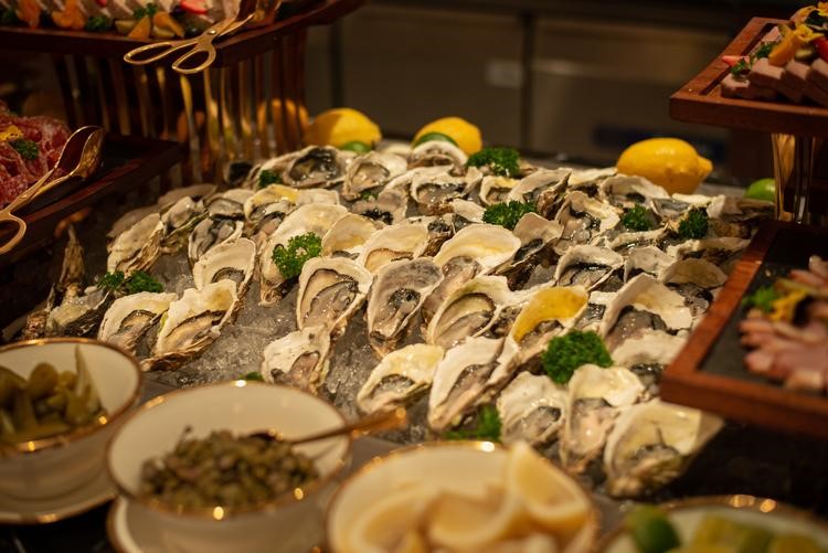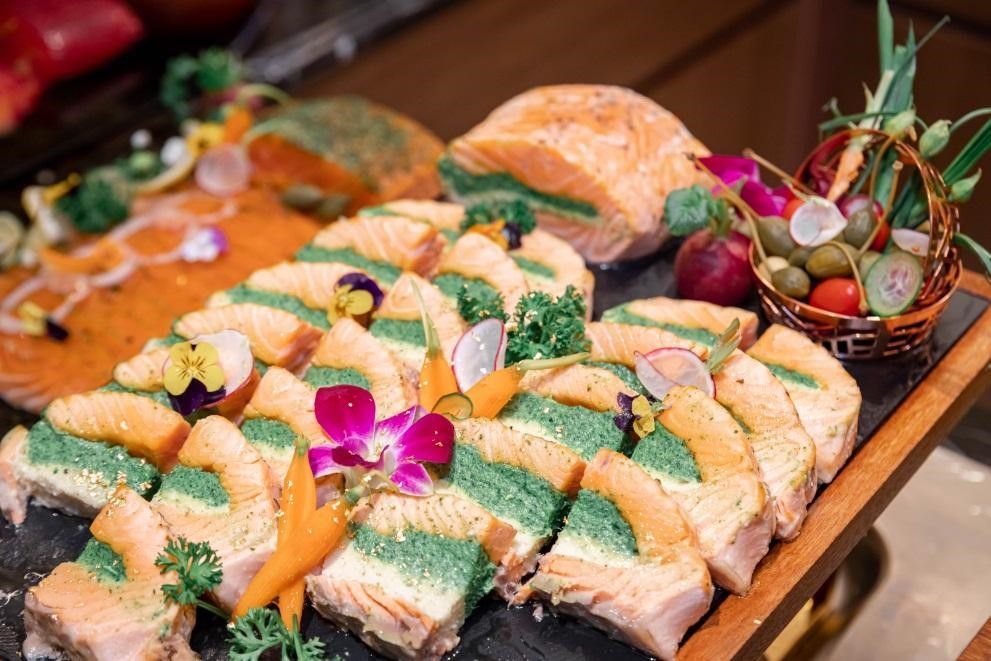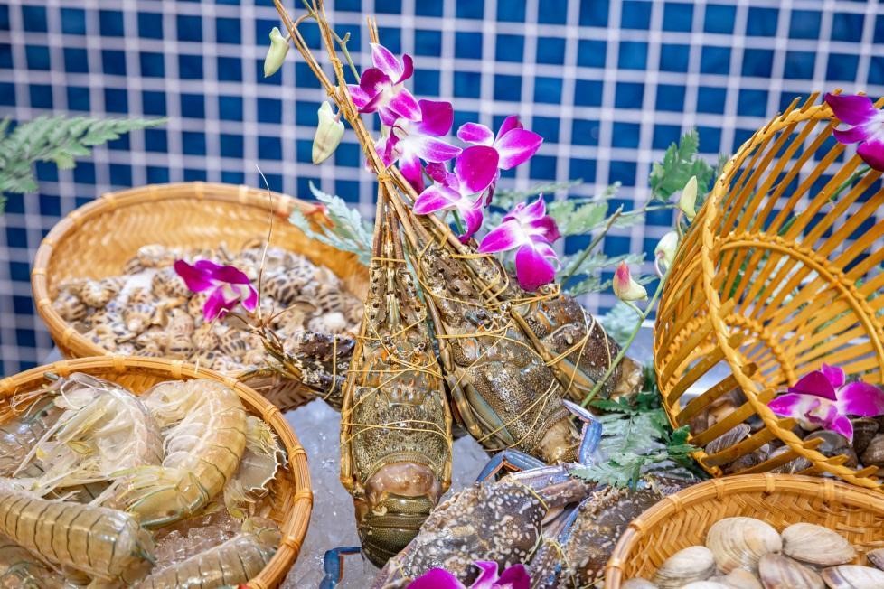 Sau đó, là hành trình trong hương vị đại dương với muôn vàn các món hải sản cao cấp như tôm hùm, sò điệp nửa vỏ, bạch tuộc… hay ẩm thực Nhật Bản đa dạng với lựa chọn sushi, sashimi tươi ngon chuẩn vị. Để bữa tiệc trở nên hoàn hảo, hãy nâng cấp trải nghiệm vị giác bằng việc thỏa thích lựa chọn và kết hợp nước sốt theo khẩu vị của bạn với các loại sốt nổi tiếng thế giới.
