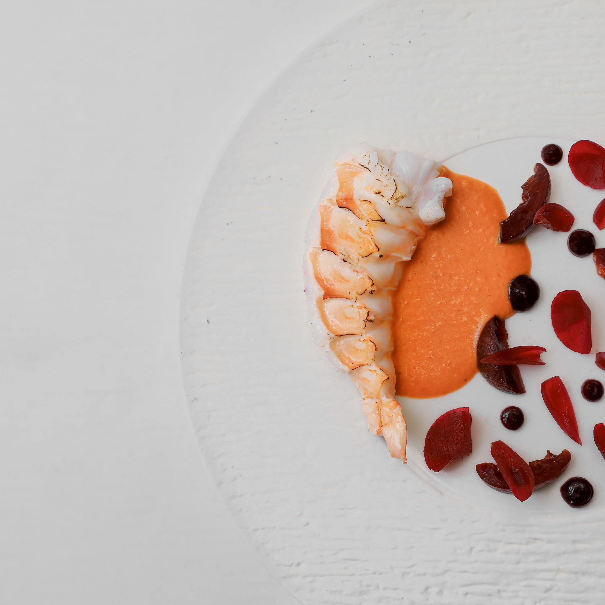 sam dining ← Previous Next → Tôm hùm, xốt ớt chuông đỏ kết hợp cùng củ dền, mận hậu. (Nguồn ảnh: Sam Dining)