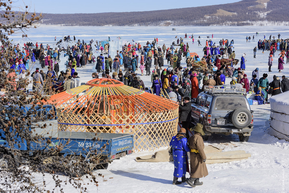 Hồ Khövsgöl đóng băng từ tháng 11 năm nay đến tháng 5 năm sau. Người dân tận dụng cơ hội đó để biến hồ băng trở thành sân chơi lễ hội hàng năm diễn ra vào đầu tháng 3.
