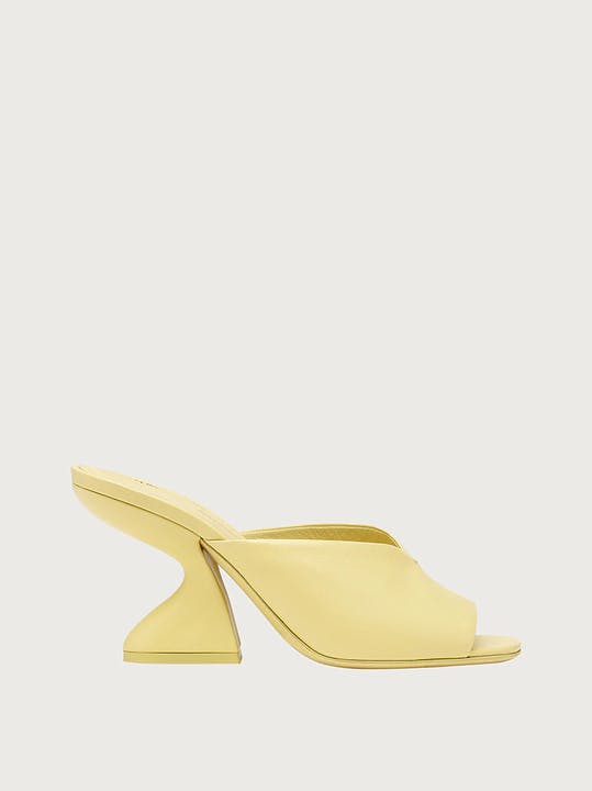 Phiên bản năm F-Heel 2021 ra mắt với hai màu Xanh Hedren và Vàng Technicolor, bên cạnh mẫu thứ ba được làm bằng nappa đen kết ngọc trai cổ điển đậm chất Ý. Phần mũi vuông vắn và phần gót cao chỉ 8,5cm mang lại sự thoải mái cho cả ngày dài.