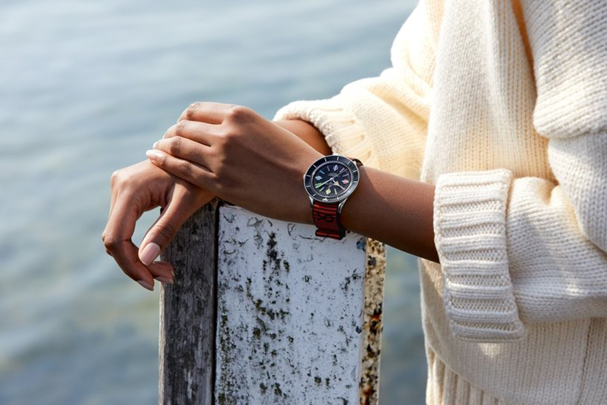 Để mang đến dòng đồng hồ mới cực ngầu và không quá trịnh trọng, Breitling đã hợp tác với Kelly Slater, Sally Fitzg Ribbon và Stephanie Gilmore. Một vòng bezel gốm màu đen và mặt số chuyển sắc tại mỗi cộc giờ của chiếc đồng hồ đã nhấn nhá thêm ấn tượng phóng khoáng kiểu bohemian cho thương hiệu Thụy Sĩ.