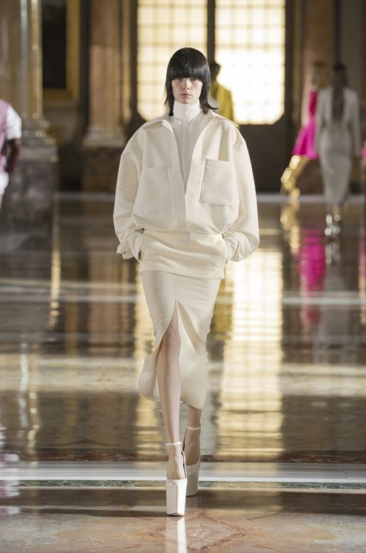 Người ta có thể mong đợi một buổi giới thiệu thời trang cao cấp của Valentino là một cuộc diễu hành của những chiếc váy cầu kỳ trên thảm đỏ, sẵn sàng thu hút một loạt những người mẫu, ngôi sao nổi tiếng nhanh nhất, nhưng những gì mà Pierpaolo Piccioli đem đến cho năm 2021 có vẻ gần gũi hơn nhiều với thực tế hiện tại của chúng ta – đa phần mọi người trên thế giới hiện đều ở trong nhà (vì cách ly). Có một sự nhấn mạnh vào các lớp ngoài cùng, với tông màu đậm nhất, trong khi các lớp lang phía dưới có chất liệu mỏng nhẹ hơn và cấu trúc ít phức tạp hơn. Đây giống như là một cách tiếp cận của thời trang cao cấp đối với những gì giới mộ điệu sẽ mặc trong ngày của mình (hãy nghĩ đến quần ống rộng vừa vặn, quần short Bermuda mát mẻ và áo vest không tay).