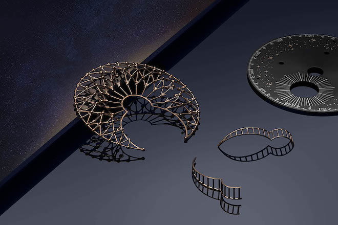 Xoay quanh trục trong 60 giây, tourbillon đóng vai trò là kim giờ cho thời gian thiên văn, tạo ra một mạch hoàn chỉnh, ngược chiều kim đồng hồ của mặt số trong một ngày thiên văn. Ngắn hơn một chút so với một ngày mặt trời mà chúng ta đều quen thuộc, một ngày thiên văn dựa trên vòng quay của Trái đất được đo tương đối với các ngôi sao “cố định”, mất 23 giờ, 56 phút và 4,1 giây. Đây là thời gian được các nhà thiên văn học sử dụng để theo dõi chuyển động của các ngôi sao trên bầu trời đêm.