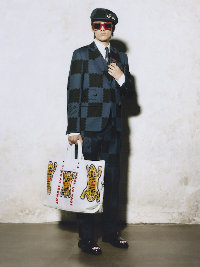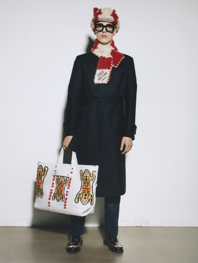 Ngoài việc áp dụng các nét cắt truyền thống vào thiết kế cho các sản phẩm mới này, Nigo cũng kết hợp các họa tiết của riêng mình như đầu hổ, trái tim màu đỏ và nút áo hình con vịt. Hình động vật có bộ lông mang tính biểu tượng này thậm chí còn có túi đeo chéo của riêng mình.