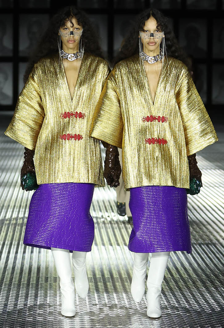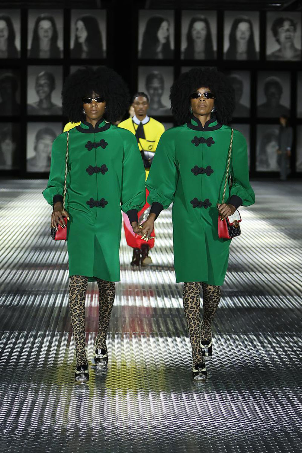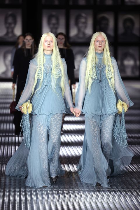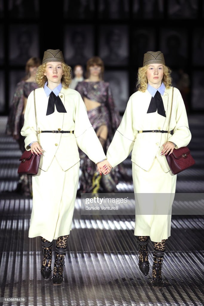 - MILAN, ITALY – SEPTEMBER 23: Models walk the runway of the Gucci Twinsburg Show during Milan Fashion Week Spring/Summer 2023 on September 23, 2022 in Milan, Italy. (Photo by Daniele Venturelli/Getty Images for Gucci)