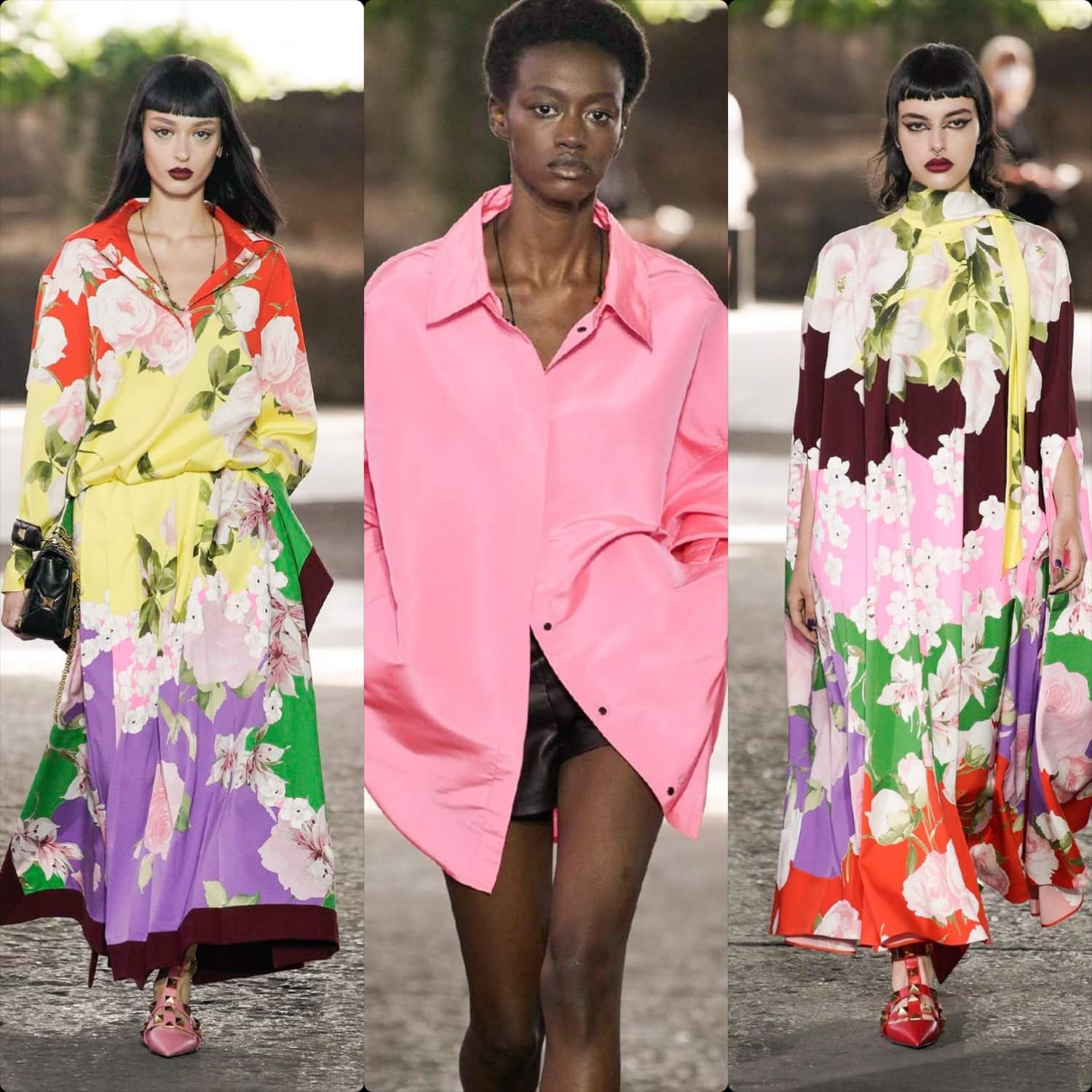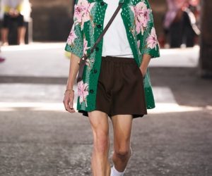 Bộ sưu tập (BST) Xuân Hè 2021 Valentino là sự chơi đùa với những điều lệ truyền thống. Những họa tiết hoa hòe, chất liệu vải ren được Piccioli áp dụng trên những chiếc áo sơ mi, áo khoác nam. Suit jacket trang trọng thì lại được ông phối với quần lửng may riêng.