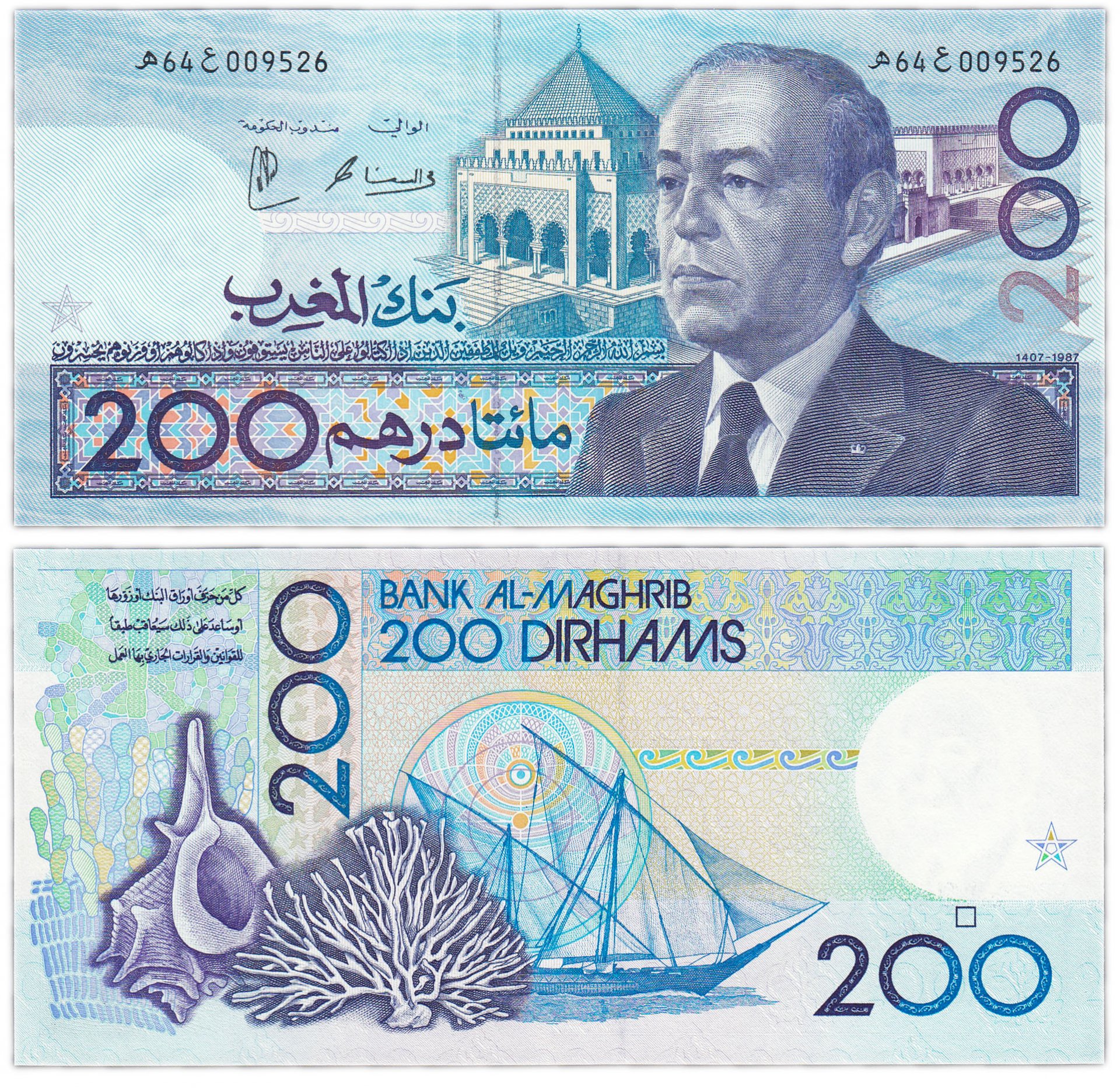 Ngày nay, tiền giấy Maroc 10 dirham đã phát triển thiết kế mới, đồng thời cập nhật công nghệ in ấn, bảo mật tân tiến của thời đại. Và “bản thiết kế huyền thoại” ấy đã trở thành hiện thực, xuất hiện trang trọng trên tờ tiền 200 dirham của Maroc. Tiền giấy 200 dirham được thiết kế theo chủ đề “Biển”, màu chủ đạo là xanh lam, họa tiết chính ở mặt trước là chân dung đức vua quá cố Hassan II, bên cạnh là hình thu nhỏ quang cảnh lăng mộ Mohammed V, mặt sau gồm các hình thu nhỏ của ốc biển có gai (gọi là Murex, một chi ốc cổ đại), nhánh san hô và thuyền buồm Dhow Ả-Rập.