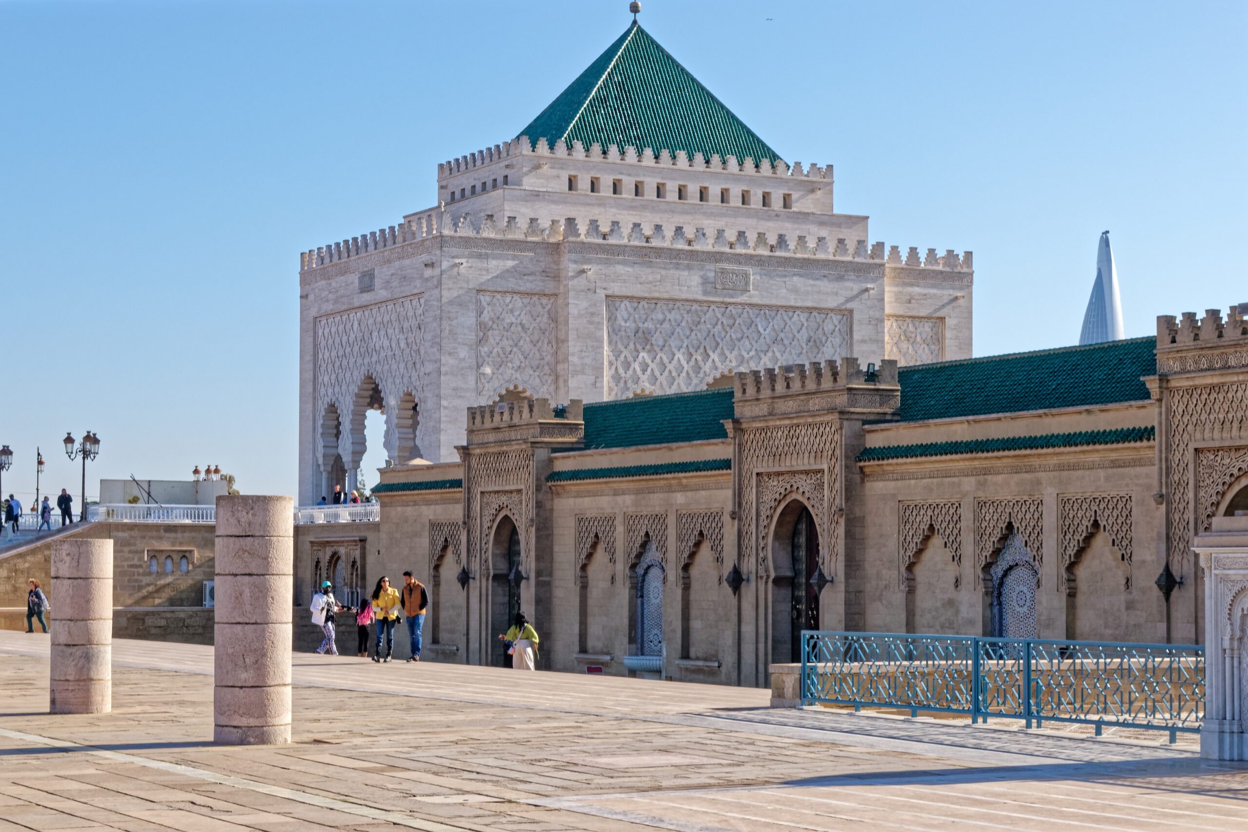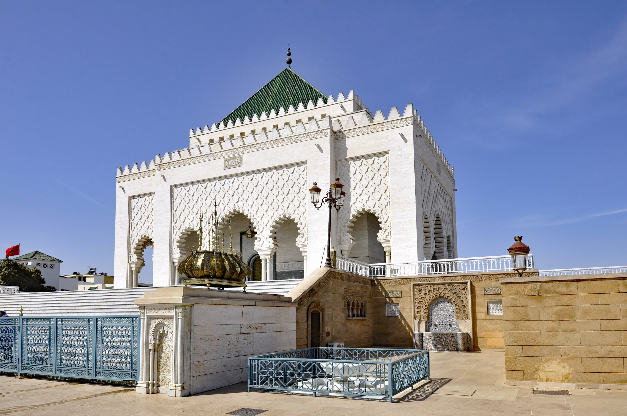 Lăng mộ vua Mohammed V và nhà cầu nguyện liền kề, dưới thời vua Hassan II được sử dụng để tổ chức các nghi lễ tôn giáo và hội nghị. Ảnh: Holger Uwe Schmitt. Nguồn: Wikipedia/CC BY-SA 4.0