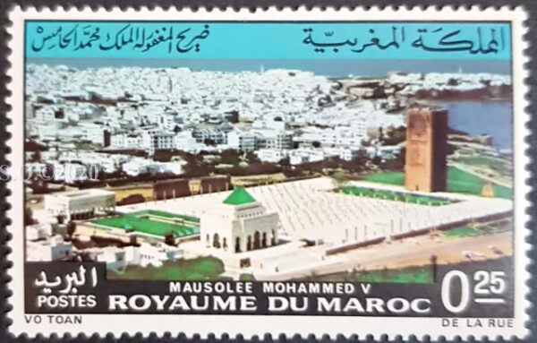 Tem kỷ niệm khánh thánh lăng mộ Mohammed V do Bưu điện Maroc phát hành vào năm 1971. Tên “VO TOAN” nằm ở góc dưới bên trái. Tem có mệnh giá 0,25 francs Maroc (tương đương 0,0025 dirham Maroc vào thời điểm phát hành), được in bởi De La Rue (một công ty in ấn nổi tiếng của Anh chuyên về tiền giấy, tem bưu chính, giấy an ninh và các sản phẩm in ấn có độ bảo mật cao). Nguồn: The World in Stamps
