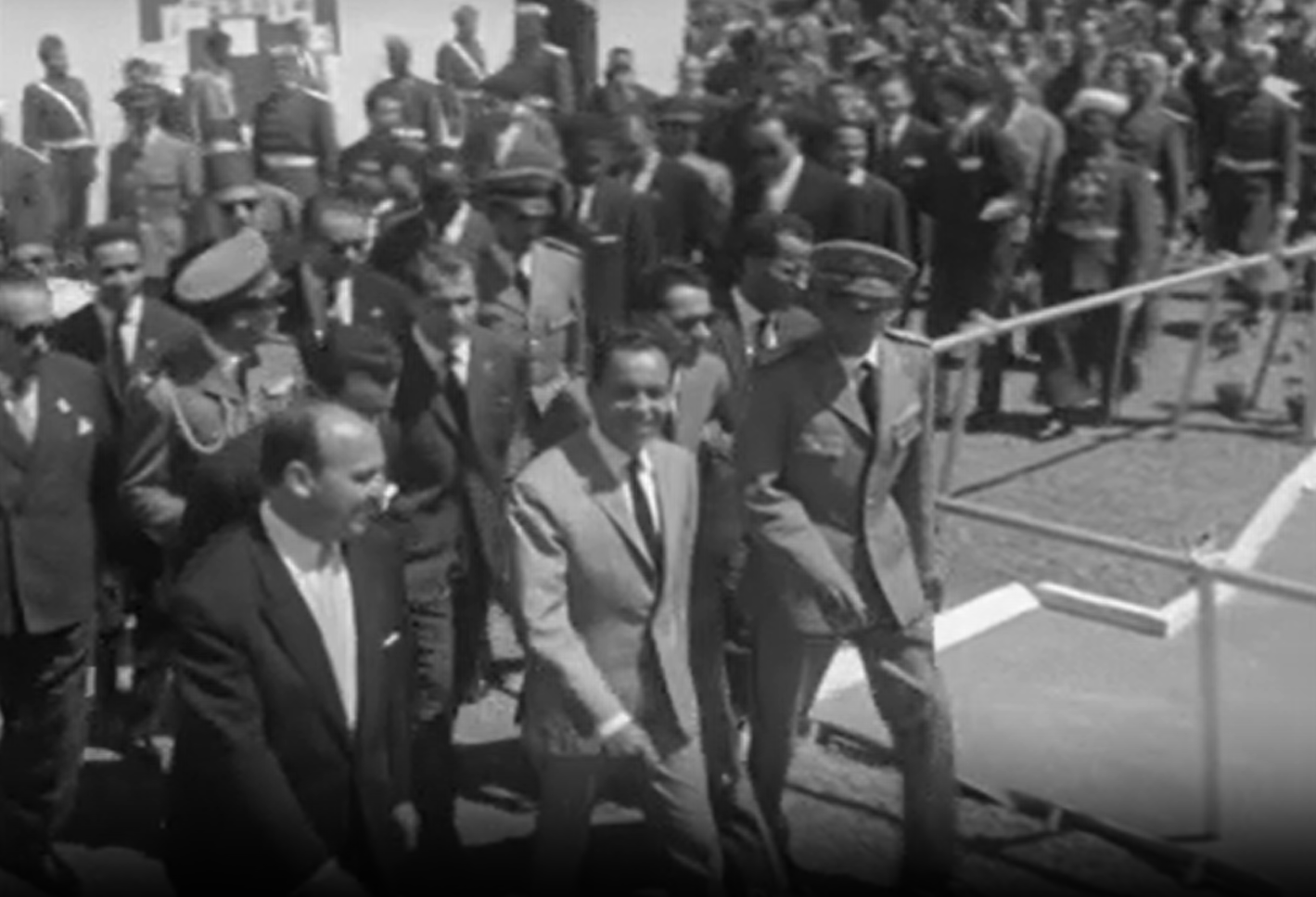 Ảnh tĩnh trích từ video “Morocco: Casablance: Vua Hassan tham dự buổi khai mạc Hội chợ Quốc tế Casablanca lần thứ 17, ngày 27/4/1961). Nguồn: British Pathé