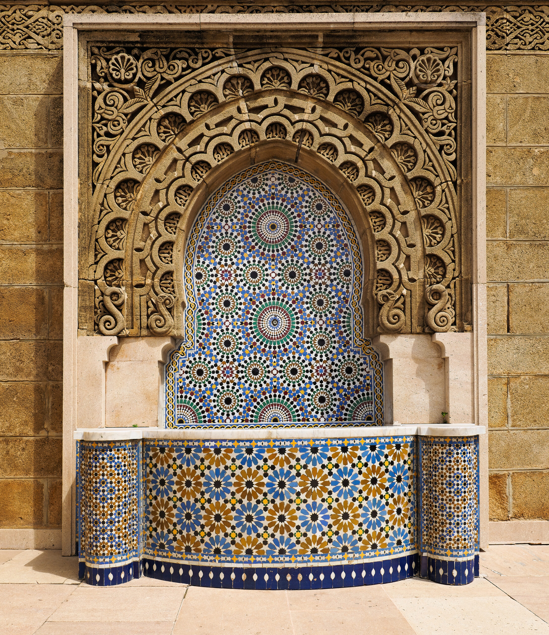 Đài phun nước với nghệ thuật điêu khắc và khảm Maroc tại khu vực lăng mộ Mohammed V. Ảnh: Steven C. Price. Nguồn: Wikipedia/CC BY-SA 4.0