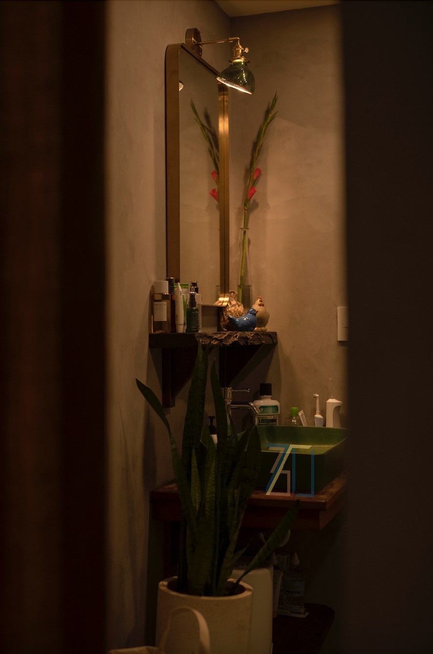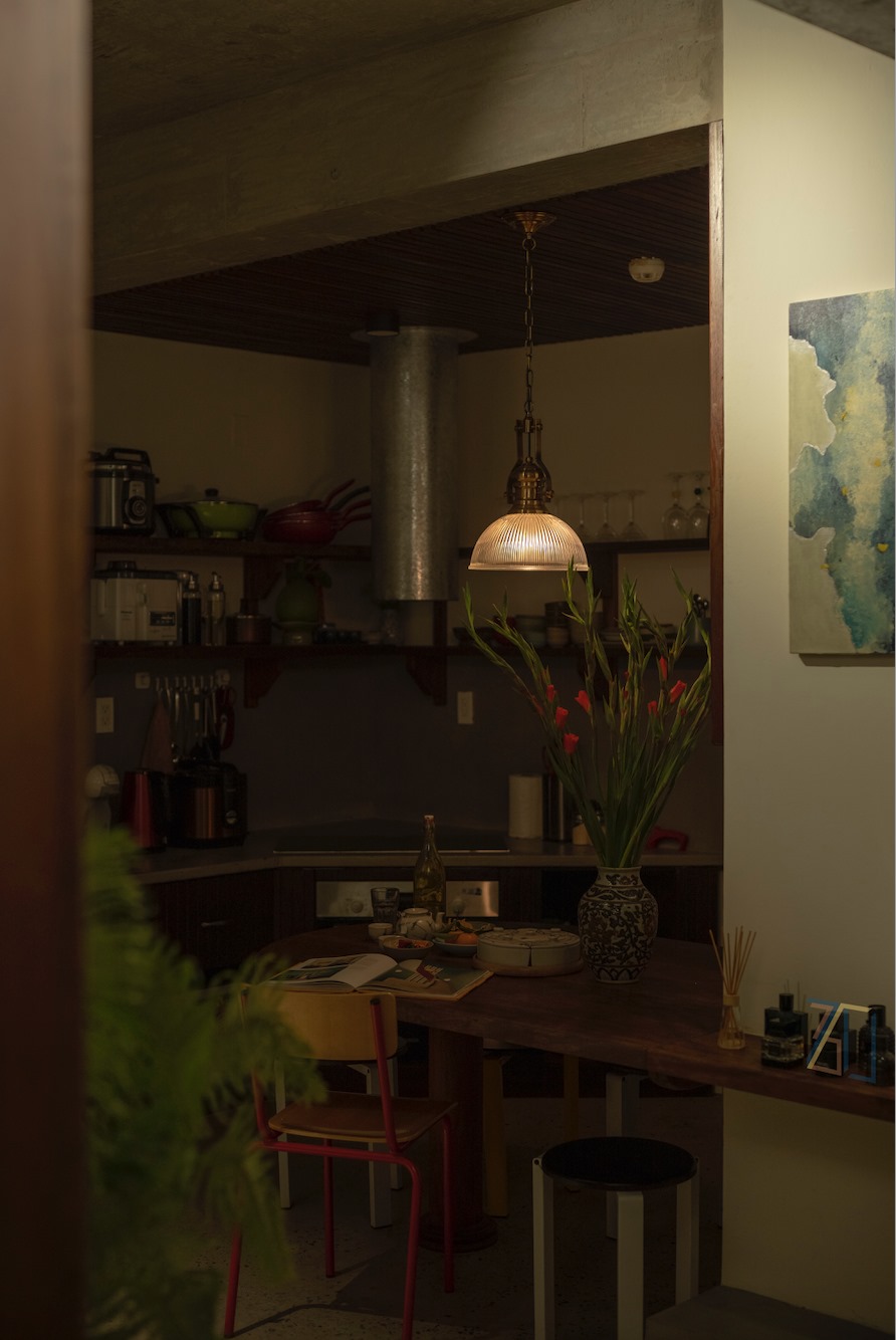 Ngoài ra, những chi tiết nhỏ khiến không gian nhà ở này thêm trang nhã và tiện nghi như đèn soi những bức tranh do người bạn vẽ tặng, bàn ăn có thể trưng dụng làm bàn làm việc và nơi bày biện để cắm hoa, không gian bếp mở để “khoe” những đồ dùng bếp, nhà vệ sinh trong phòng ngủ chính không có cửa mà sẽ thả rèm, một hệ tủ áo quần và phụ kiện,…