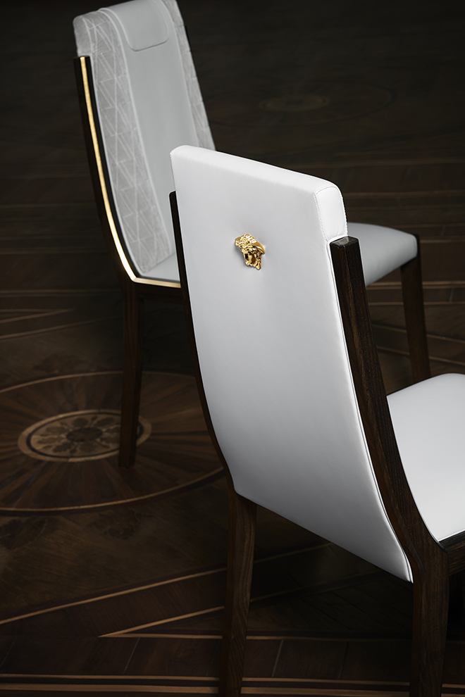 Nổi bật với chi tiết và đường viền hình Medusa, dòng nội thất Medusa Carezza gây ấn tượng thị giác nhờ các đường cong cuốn hút và phần cứng tông vàng, đặc biệt, các thiết kế chính được chế tác tinh xảo bằng da, nhung và bọc hoa văn.