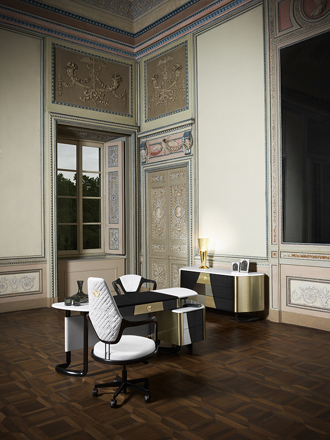 Đối với không gian làm việc (văn phòng), nhà mốt giới thiệu dòng nội thất The Medusa được chế tác bằng gỗ, trong đó ghế và bàn có bọc da và trang trí Medusa bằng vàng.