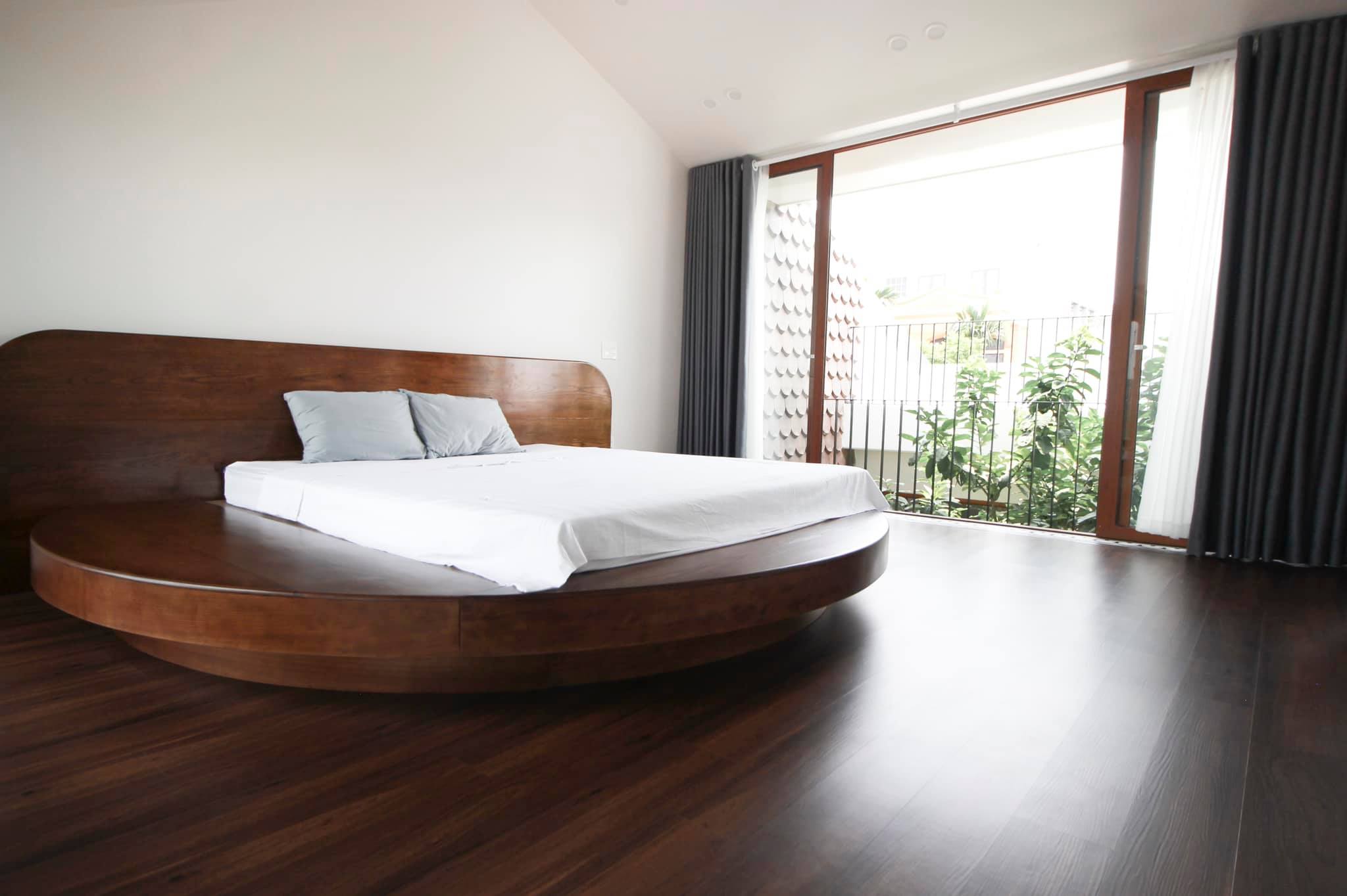 Công trình được thiết kế nhiều cửa kính mang hơi thở đồng quê vào bên trong không gian sống thơ mộng. KTS đã bố trí các mi cửa chắn nắng ở khu vực cửa kính chắn hướng nắng. Đến khoảng 17g mỗi ngày, nắng chiếu nhẹ vào gian phòng khiến không gian trở nên thông thoáng và dễ chịu.