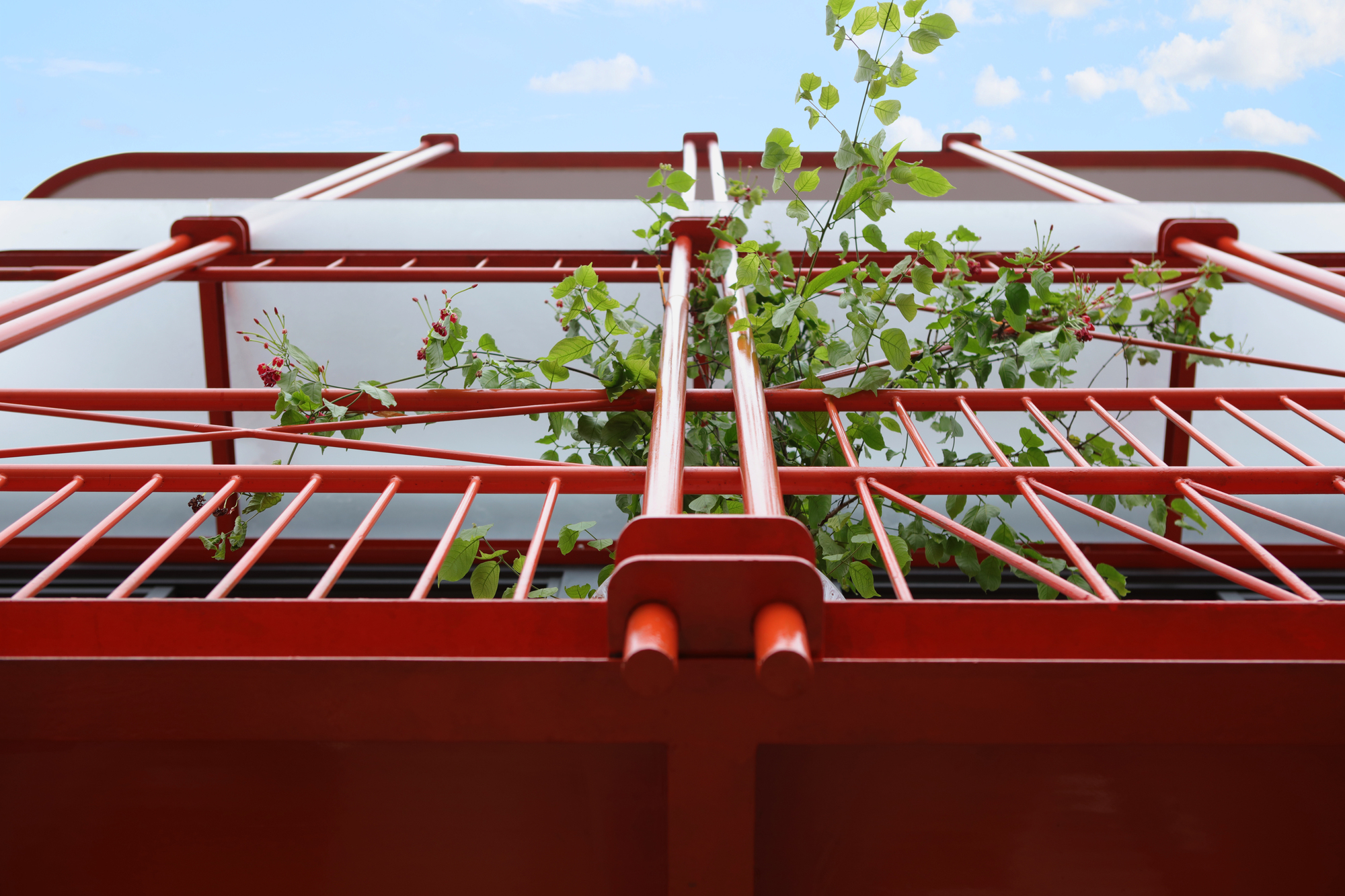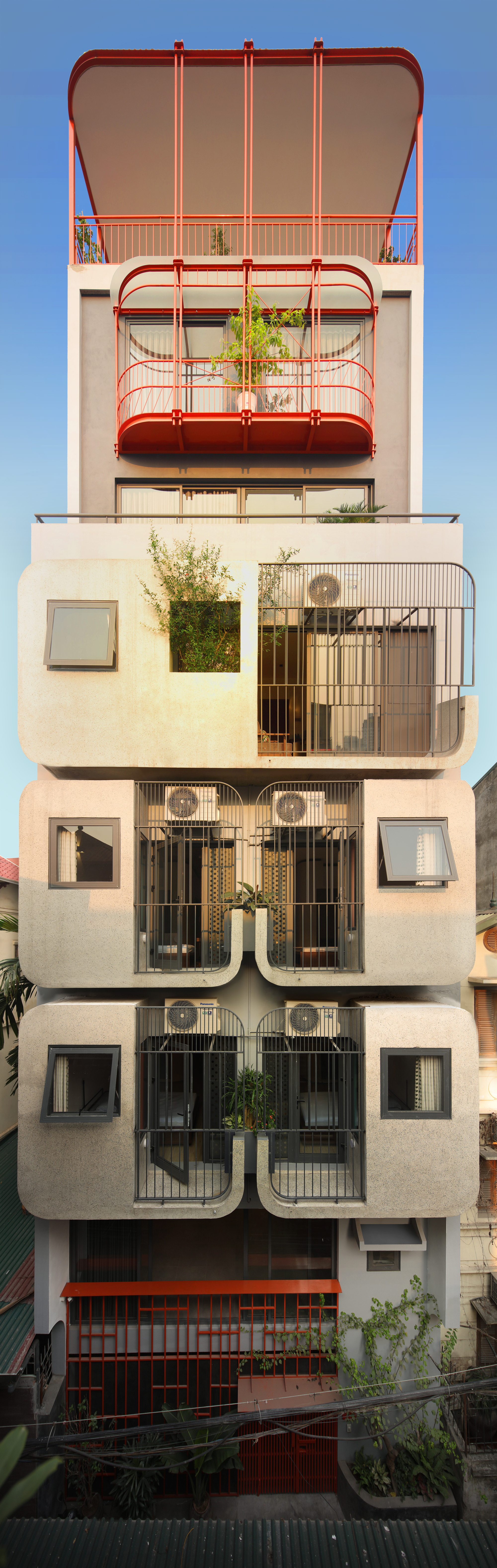 Ngoài các không gian cơ bản như bếp, ăn, phòng khách, phòng ngủ và phòng vệ sinh, mỗi căn hộ còn được thiết kế thêm ban công, một sự kết hợp giữa không gian bên trong và bên ngoài để thư giãn hoặc đọc sách. Nếu ban công căn hộ phía trước được thiết kế mở rộng thì ban công căn hộ phía sau lại được thiết kế nổi trên giếng trời của tòa nhà. Đây cũng là những không gian bán công cộng, được thiết kế riêng cho từng căn hộ nhưng những người sống trong các căn hộ liền kề có thể tiếp xúc nhau. Các ban công này đóng vai trò lớp đệm, bảo vệ không gian chính trong căn hộ khỏi tác động trực tiếp của ánh nắng từ hướng Tây.