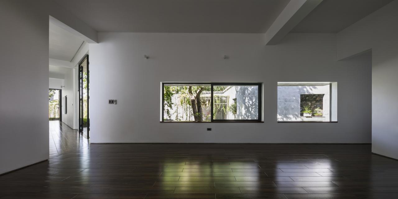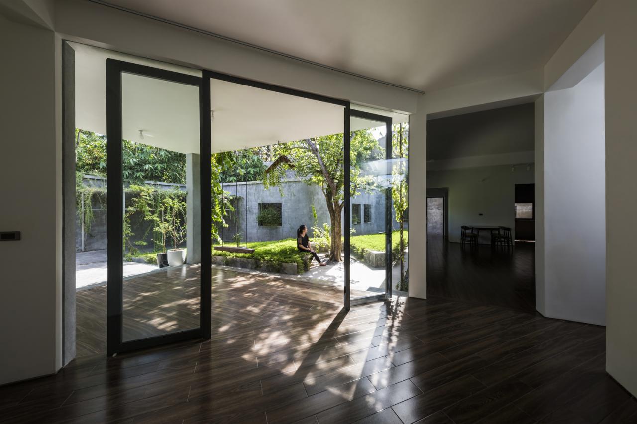 Khu đất nguyên bản bao gồm 5 cây lớn xanh mơn mởn, các kiến trúc sư của Nguyen Khac Phuong Architects đã giữ lại như một thông điệp về cách chung sống cùng thiên nhiên. Chủ nhân ngôi nhà là cặp vợ chồng trẻ cùng hai người con ở tỉnh Nghệ An.