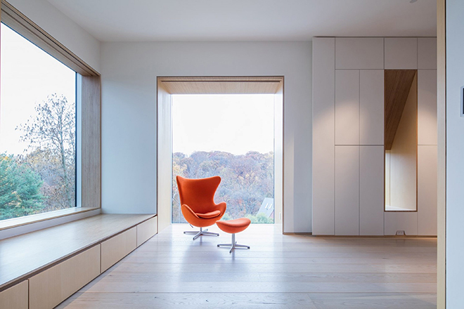 NADAAA gợi ý tái tổ chức không gian có vân, đánh dấu sự chuyển đổi địa điểm từ cũ sang mới, một concept luôn nhất quán trong toàn bộ ngôi nhà, ngay từ tủ quần áo, ghế ngồi và khung cửa sổ.