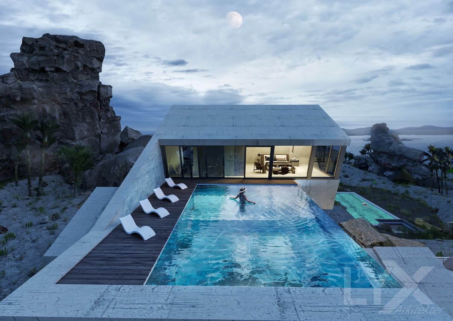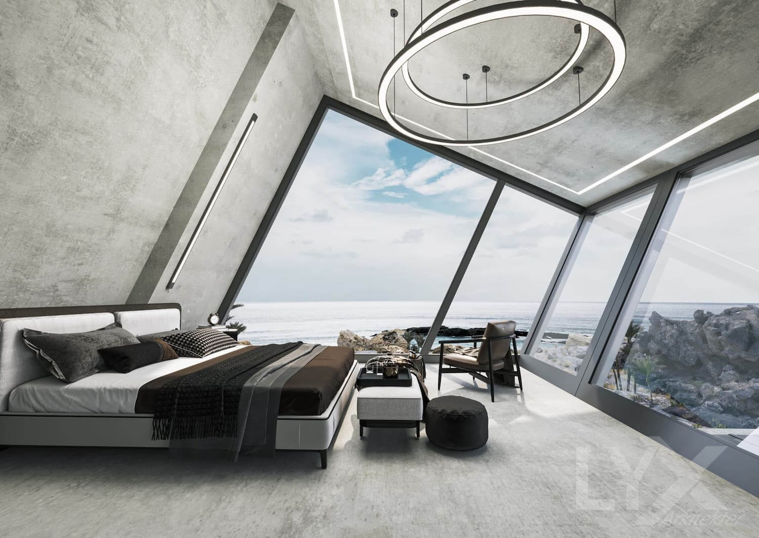 Cũng như những căn biệt thự khác, tầng trệt có đầy đủ nhà ăn, phòng ngủ, sân ngắm cảnh phòng tắm. Nhưng điểm đặc biệt nằm ở tầng ba có phòng ngủ chính liên kết với một cánh cửa riêng biệt, gia chủ có thể để nhảy xuống hồ bơi toàn cảnh ngoạn mục vào những ngày hè nóng nực.
