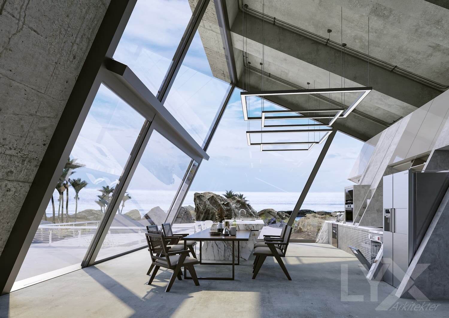 Dự án biệt thự độc đáo này được thiết kế tại Iceland với tổng diện tích lên đến 750m2 với hai tầng. Nhìn từ bên ngoài, tổng thể ngôi biệt thự như bị nghiêng hẳn về một phía với các đường dốc tương phản mạnh, được lấy cảm hứng thiết kế từ phong cách Brutalism (chủ nghĩa thô mộc).