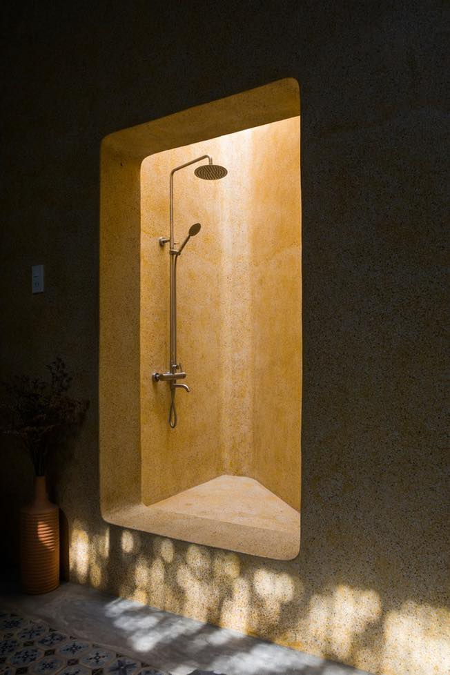Thiết kế phòng tắm vừa tối giản vừa điều hòa trong bầu không khí tự nhiên, đặc biệt là ánh nắng ấm áp chiếu rọi vào bên trong.