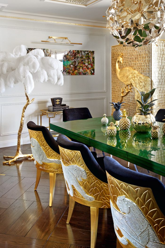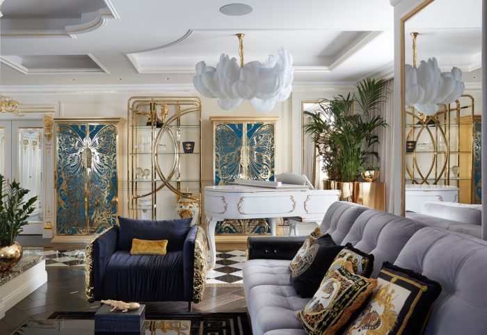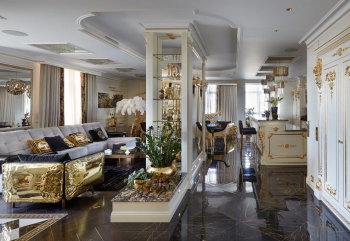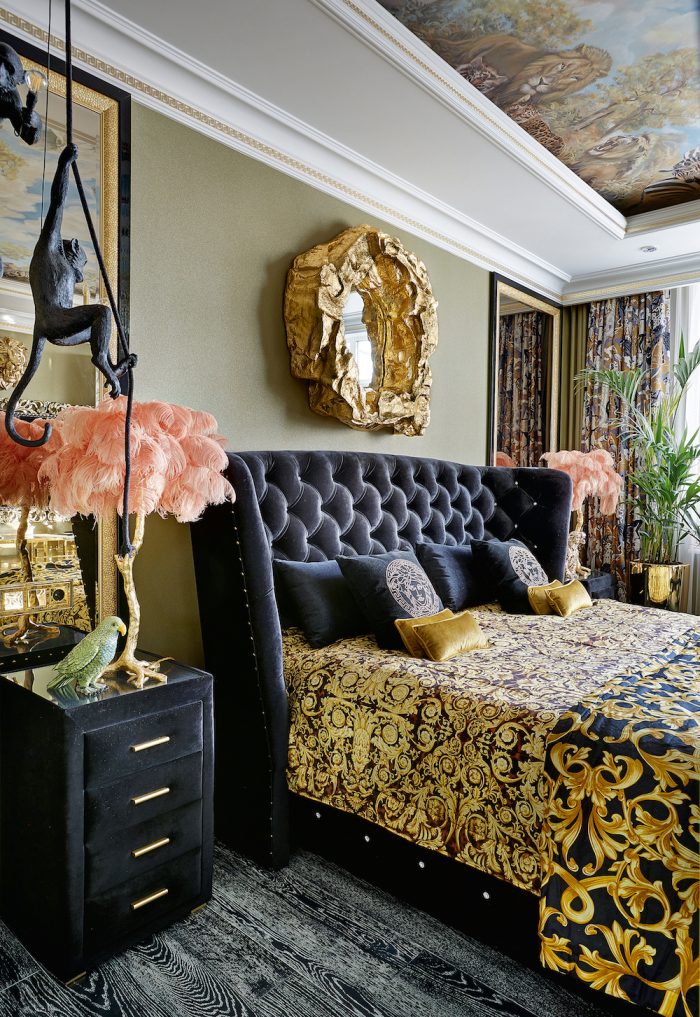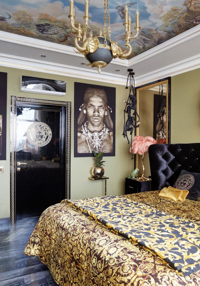 Một trong những điều khiến bạn thích thú khi bước vào căn hộ là tình yêu nồng nàn của chủ nhân với vàng. Phụ kiện vàng, các món trang trí nội thất, theo phong cách táo bạo và kỳ lạ tạo điểm nhấn cho mọi không gian. Thiết kế lấy cảm hứng từ rạp xiếc (như hình các loài động vật), những đồ trang trí của Versace (Eradze là một fan hâm mộ của thương hiệu này) và các yếu tố miền nhiệt đới, tất cả kết hợp hài hòa với nhau để tạo ra một ngôi nhà sang trọng cho một người đàn ông có niềm đam mê giải trí.