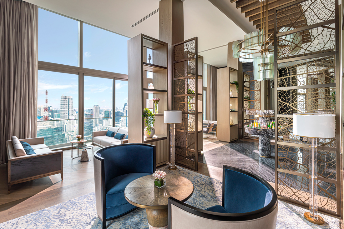 Tại The Residences at Mandarin Oriental, Bangkok, 146 khu nhà ở ven sông sang trọng có các lựa chọn hai hoặc ba phòng ngủ từ 130 đến 230 mét vuông, và các căn hộ penthouse từ 380 đến 710 mét vuông. Với thang máy riêng, trần nhà cao 3,2 mét và diện tích chung lớn gấp ba lần mỗi căn so với nhiều căn hộ uy tín khác ở Bangkok, nơi đây thực sự là tiêu chuẩn mới của phong cách sống xa xỉ.