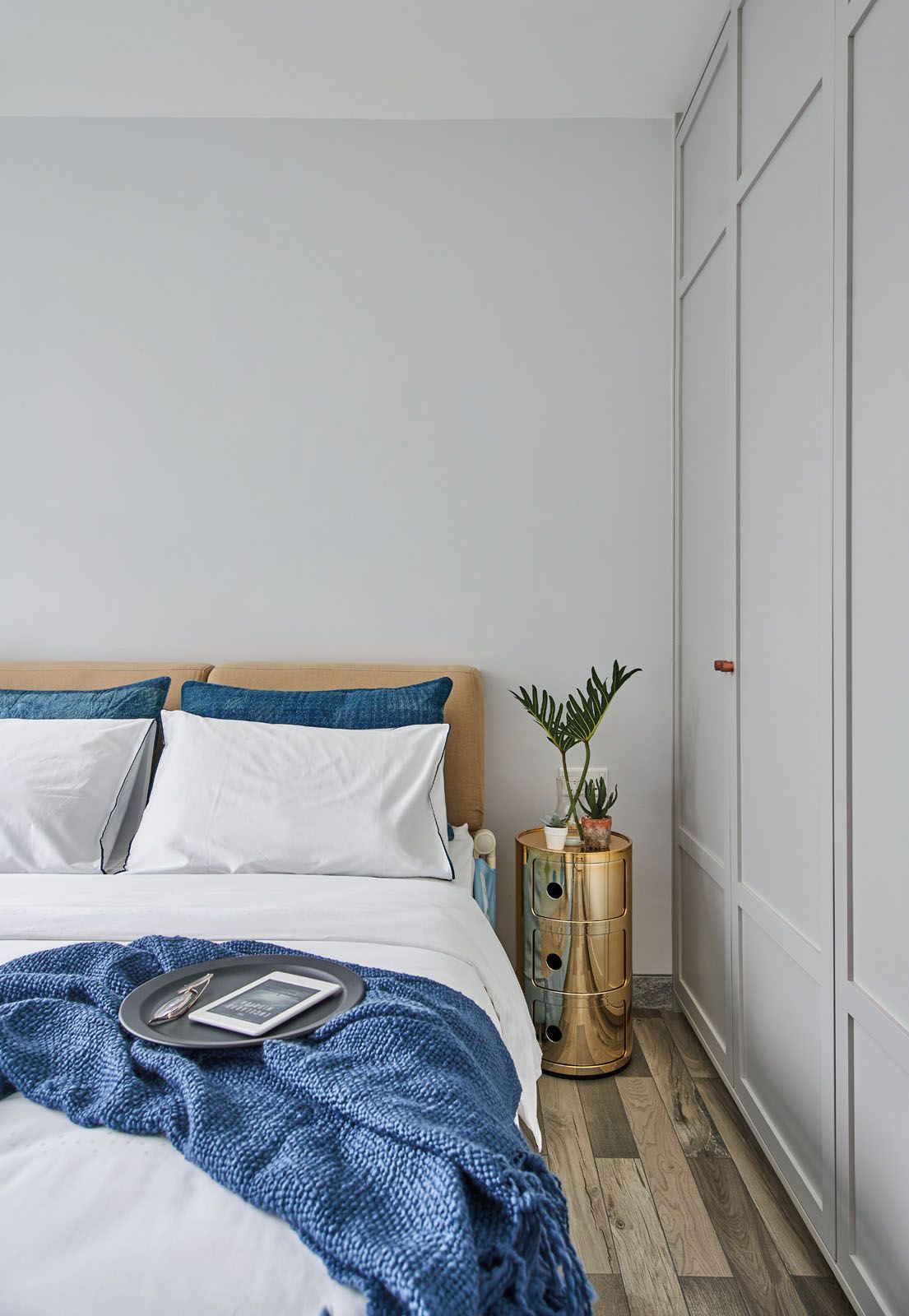 Căn hộ có 3 phòng ngủ, một phòng ngủ cho cặp vợ chồng, một phòng ngủ cho con cái và phòng thứ ba cho khách. Các bức tường trắng trong các phòng được nhấn nhá với phần rèm cửa xanh, giường màu chàm, maroon hoặc hoa cẩm chướng. Các nhà thiết kế tận dụng vật liệu tự nhiên như bề mặt tường gỗ, ghế mây trong phòng ngủ chính, gợi lên cảm giác thân mật cũng như mở ra khung cảnh tự nhiên bên ngoài.