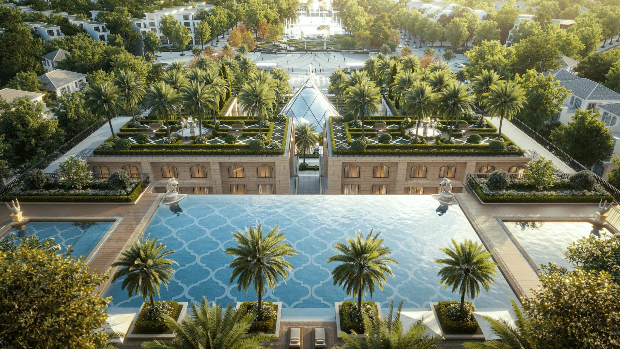 - Phối cảnh hệ tiện ích nội khu mang phong cách nghỉ dưỡng Malibu. Ảnh: Vinhomes