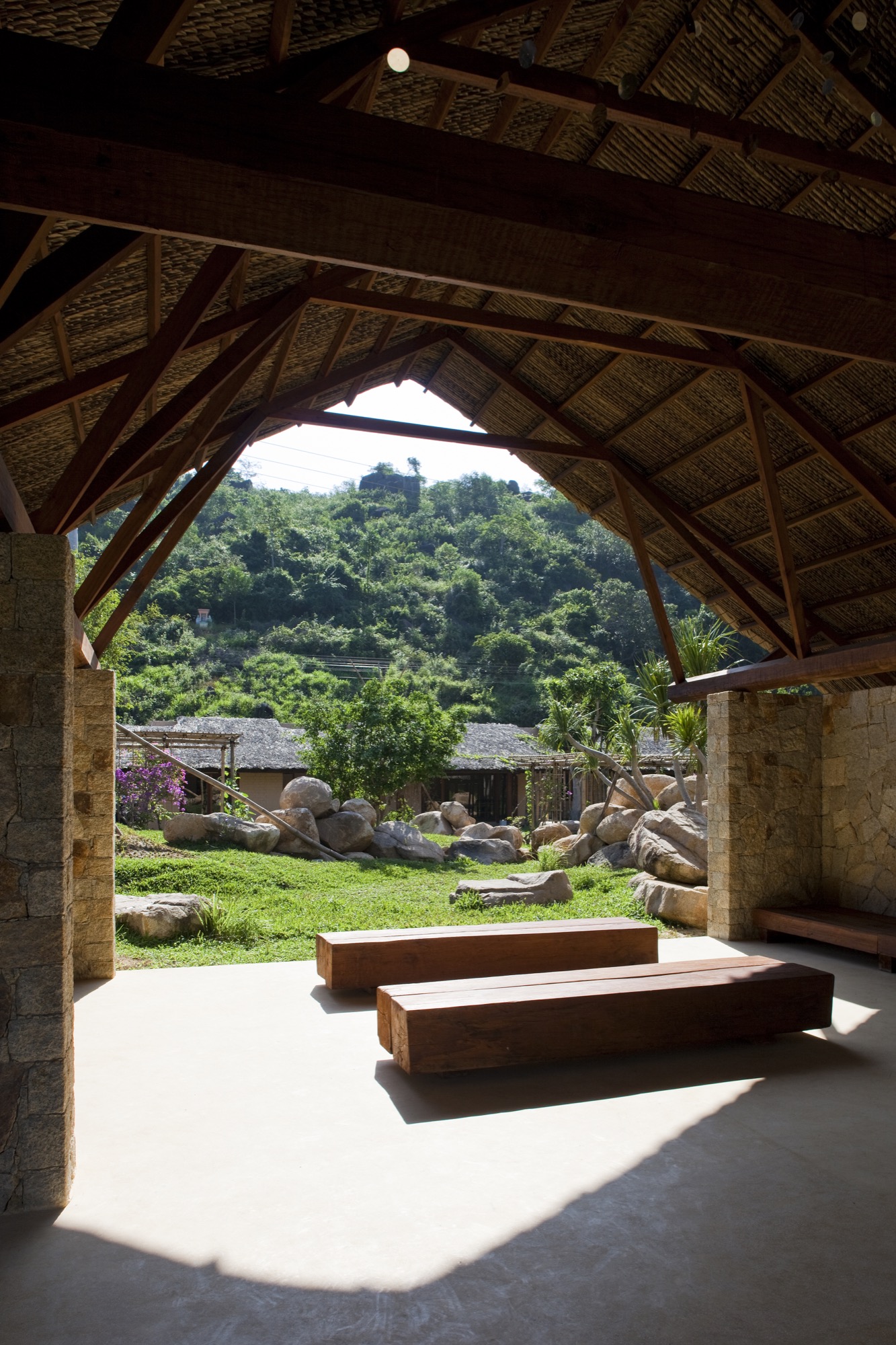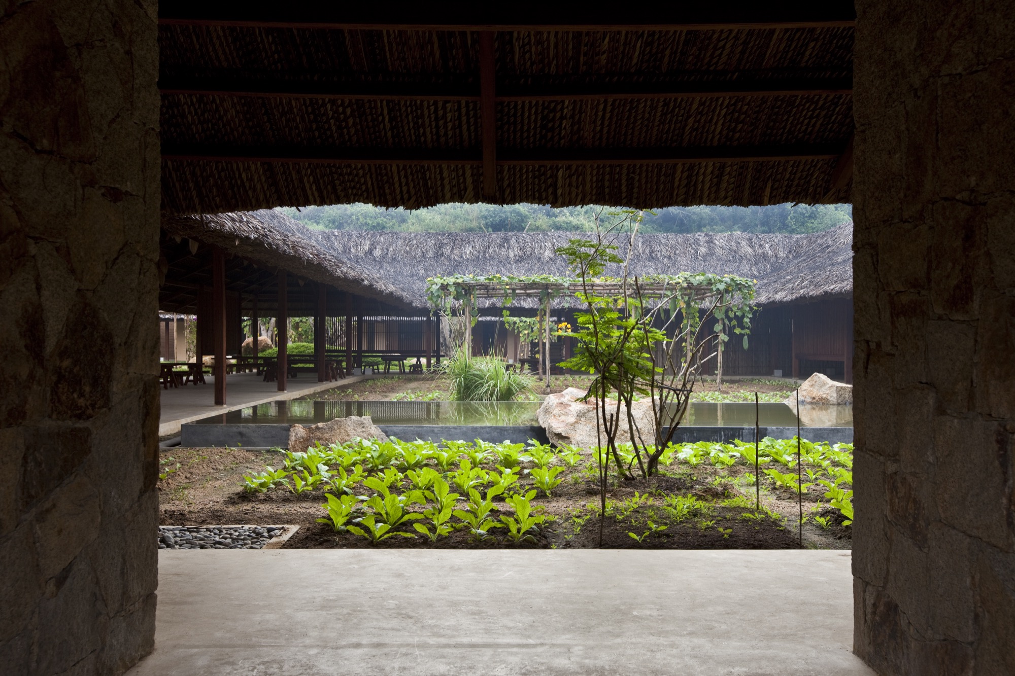 I Resort tràn ngập sự hài hòa và cảm xúc bản địa. Công trình sử dụng gỗ, đá và lá dừa địa phương với các vật liệu sống động. Bối cảnh chính nổi bật với đầm sen, vườn bầu và vườn hoa, giúp làm dịu cái nắng đặc trưng của thành phố nhiệt đới.