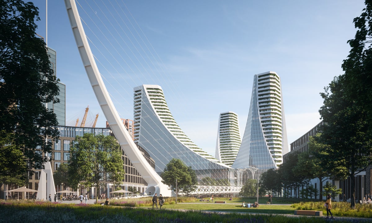 Dự án rộng đến 130.000 mét vuông, bao gồm trạm xe buýt, nhà hát, rạp chiếu phim, địa điểm biểu diễn, quán bar, cửa hàng, trung tâm an sinh và ba tòa tháp hoành tráng có chức năng như không gian làm việc, căn hộ và khách sạn. Tất cả kết nối với sông Thames qua cây cầu vững chãi.