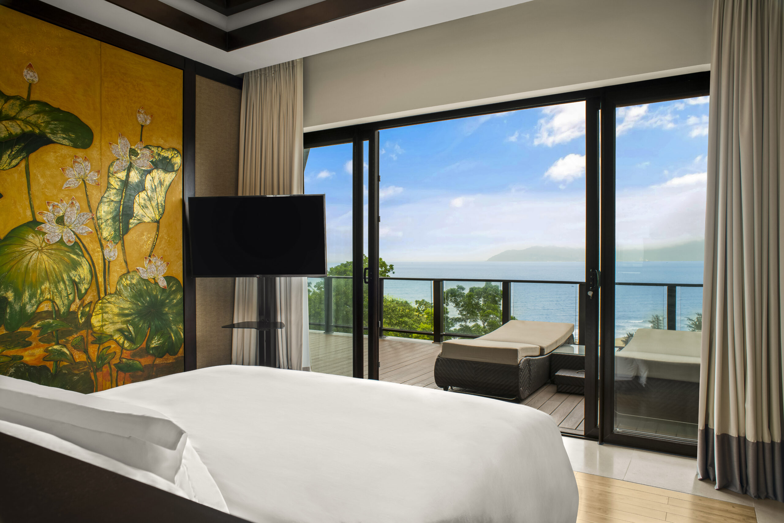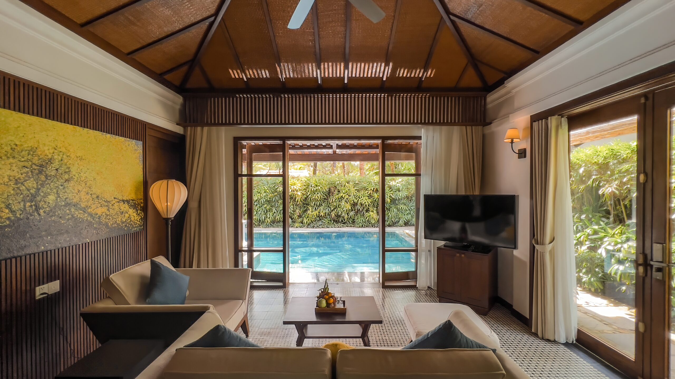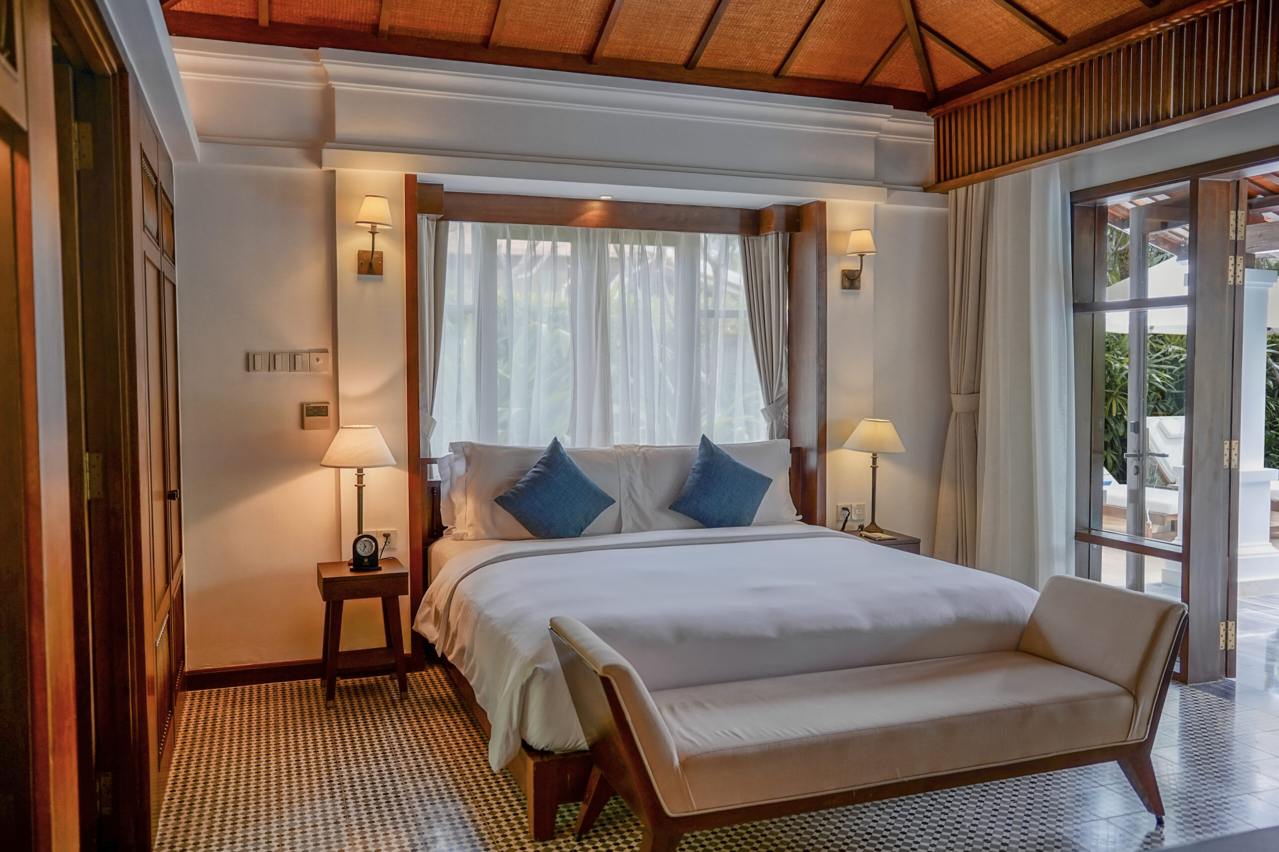 Với diện tích lên đến 260m2, mỗi biệt thự gồm ba phòng ngủ được thiết kế với cửa kính từ sàn đến trần, cho phép tận hưởng vẻ đẹp không giới hạn của đại dương. Phong cách kiến trúc truyền thống Huế, kết hợp với nội thất sang trọng và tinh tế với những tác phẩm nghệ thuật độc đáo, tạo nên không gian nghỉ dưỡng đầy mê hoặc. Điểm đặc biệt của mỗi biệt thự là hồ bơi vô cực ngoài trời với nước ấm, mở ra một không gian thư giãn tuyệt vời, hướng tầm nhìn ra đại dương. Bên cạnh đó, bãi biển riêng dài 3km chỉ cách vài bước chân, là nơi lý tưởng để thư giãn và tận hưởng những khoảnh khắc bình yên giữa thiên nhiên tuyệt đẹp.