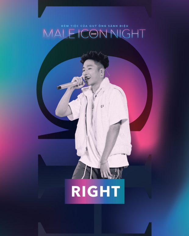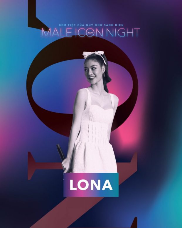 Cặp đôi thí sinh King Of Rap, Lona và Right, là hai nghệ sĩ đầu tiên trình diễn trên sân khấu Male ICON Night 2020. Lona là nghệ danh của Á hậu 1 Miss World Việt Nam, Kiều Loan. Sau khi tham gia King Of Rap, Kiều Loan đã để lại ấn tượng lớn đến với khán giả yêu dòng nhạc rap. Trong khi đó, Right là một thí sinh cực kỳ chất lượng của cuộc thi này. Anh là một trong tám gương mặt cuối cùng, và giành lấy giải thưởng Á quân của chương trình. Cặp đôi Lona & Right chắc chắn sẽ đem đến không ít bất ngờ cho các khách mời tại bữa tiệc.
