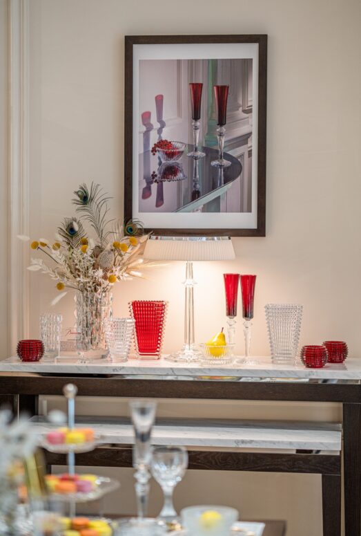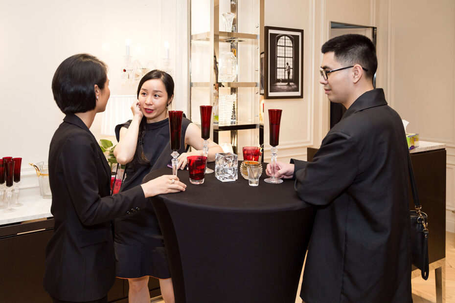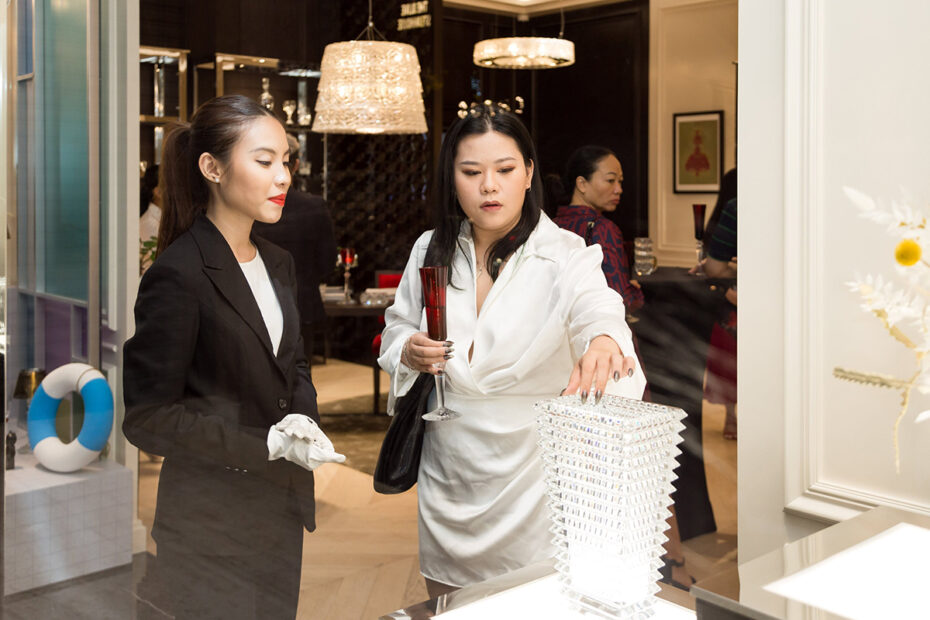 Buổi tiệc là thời điểm để trải nghiệm những vật phẩm pha lê – đặc biệt từ BST Mille Nuits của Baccarat cũng như những nốt hương vị champagne từ Perrier-Jouet. Sự kết hợp hoàn hảo từ những tinh hoa nghệ thuật và lối sống từ nước Pháp. Không gian boutique Baccarat Việt Nam được thắp sáng bằng sự lung linh và tinh khiết từ những tác phẩm pha lê được chế tác thủ công từ ngôi làng nhỏ mang tên Baccarat, miền Đông nước Pháp.