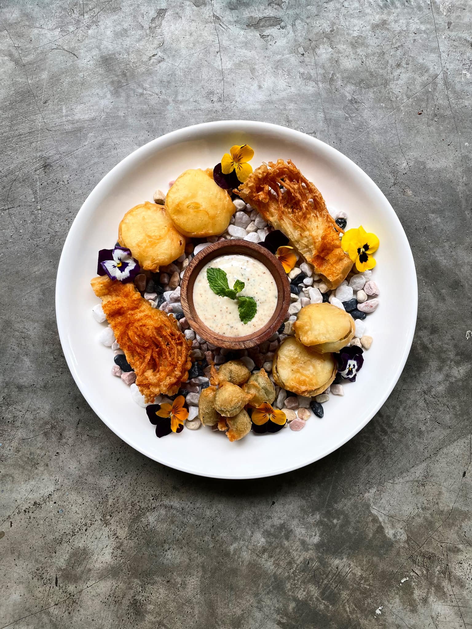 Pickles là cách gọi các món muối chua, phổ biến là món dưa muối ngâm giấm thường được dùng như món ăn kèm trong các bữa ăn. Đây cũng chính là món đầu tiên bạn được phục vụ khi đến Pickles Eatery (Nguyễn Công Trứ, quận Bình Thạnh). Không gian quán không quá to nhưng chỉ cần đi ngang qua, bạn sẽ bị thu hút ngay bởi màu sơn tường xanh, trắng nổi bật. Quán có cả không gian trong nhà và vài chỗ ngồi ở ngoài trời.