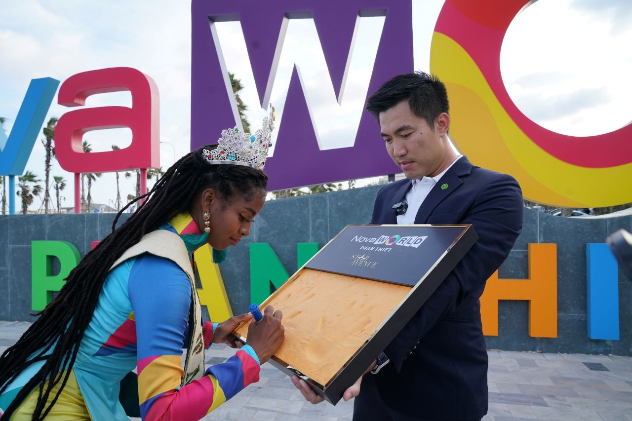 Và đặc biệt nhất, trước khi tạm biệt Siêu thành phố biển, Destiny Wagner đã thực hiện nghi thức ghi lại dấu vân tay của mình. Trong tương lai, khi Đại lộ danh vọng – trục đường chính dài 44m hoàn thành, Miss Earth 2021 sẽ là một trong những người nổi tiếng đầu tiên được vinh danh tại đây. “Tôi tin rằng dự án này sẽ là một không gian phù hợp cho những sự kiện quốc tế, không chỉ dừng lại ở cuộc thi hoa hậu trong nước, mà còn hơn thế nữa” – cô chia sẻ.