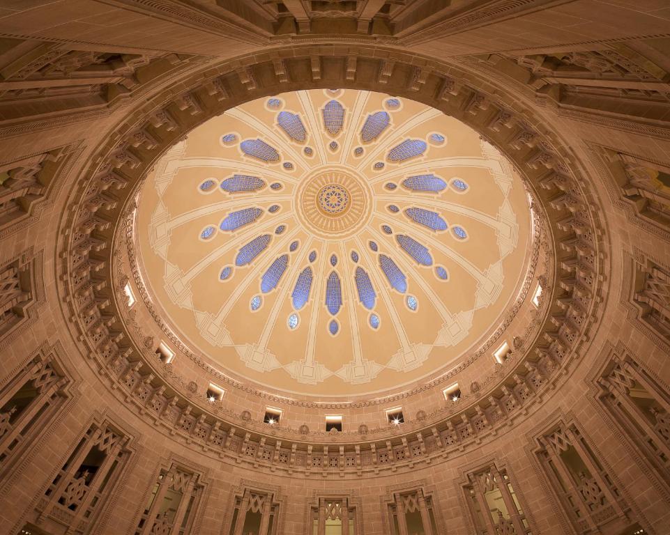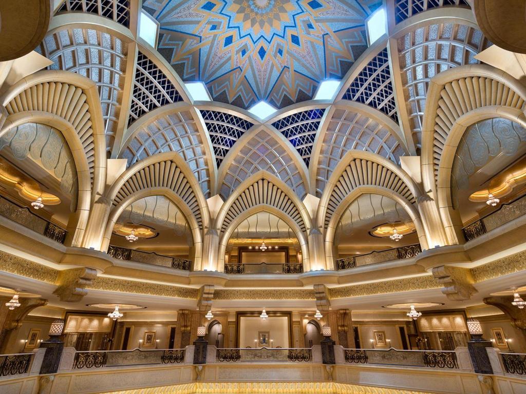 Mái vòm của tâm nhĩ của nó được dát bằng vàng lá 22 carat và trang trí bằng 13 viên đá hoa màu sắc nhập khẩu từ nhiều nơi trên thế giới. Trần nhà của Cung điện Emirates được trang trí bằng 1.002 chiếc đèn chùm pha lê Swarovski. Điều thú vị là khách sạn còn có máy bán vàng miếng tự động.