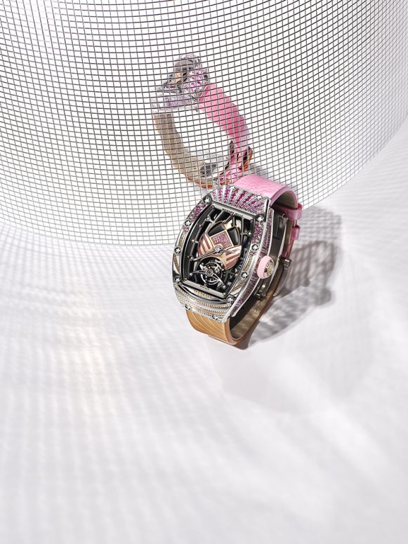Cả bí quyết nghệ thuật và cơ học đều được thể hiện một cách hoàn hảo trong bộ sưu tập mới này, đi kèm một loạt các mẫu dây đeo được thiết kế đặc biệt cho từng mẫu. Những chiếc dây đeo được chạm nổi tỉ mỉ với các họa tiết biểu trưng cho cây cỏ ở hướng 12 giờ, cũng như các đường hình học ở hướng 6 giờ dưới hai sắc thái khác nhau. Ngoài ra, phương pháp xử lý kim loại trên bề mặt da chính là một yếu tố góp phần tăng cường tác động trực quan của những viên đá quý.
