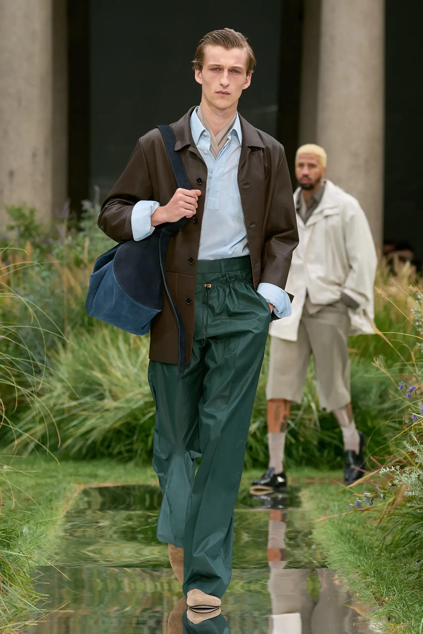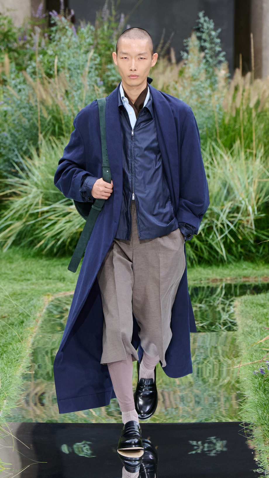 Hầu hết các thiết kế giày dép đều có mũi tròn nhẹ nhàng – trái ngược với mũi giày vuông vắn của các bộ sưu tập trước đó, gợi nhớ về những mẫu giày tản bộ dạo phố nhàn nhã. Giày thể thao đế bệt hoặc dép xỏ ngón bằng da được chế tác bằng da Ý. Khăn Pashmina và loạt mũ cùng phụ kiện nam đã loại bỏ các giới hạn cấu trúc truyền thống cứng nhắc để đem tới diện mạo “tan ca”.