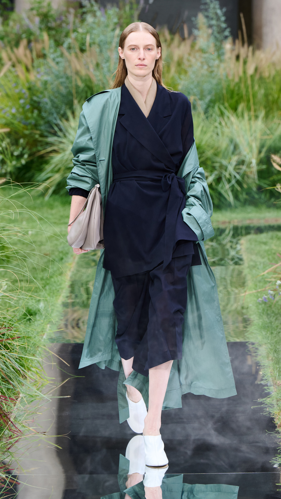 Cả cạp và gấu quần được kéo cao, trong khi áo blazer, váy, đầm và áo khoác trench coat mỏng nhẹ được định hình thông qua thiết kế xếp nếp thanh lịch. Các đường may được thêm vào áo khoác bomber để tạo tay áo rộng và kết hợp với áo phông và áo hoodie có dây rút. Một chiếc váy không lưng nổi bật với nếp gấp xếp nếp phía trước và cổ áo hớt qua lưng dưới.