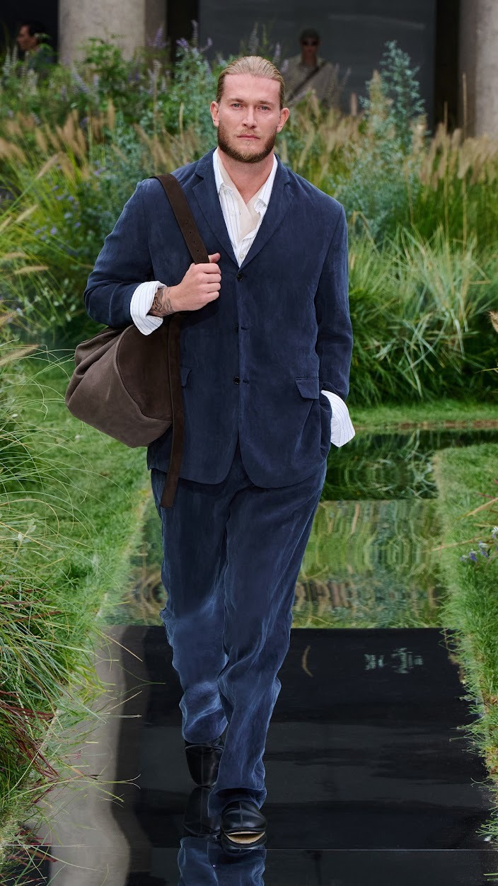 BST Xuân – Hè 2025 của BOSS được trình diễn tại Palazzo del Senato ở Milan, nơi sân trong của cung điện được biến hóa thành một ốc đảo xanh yên bình, tạo nên khung cảnh êm dịu và thanh thoát, đối lập hoàn toàn với nhịp sống đô thị hối hả. Các người mẫu sải bước giữa những tán lá và bông hoa, khắc họa sự tương phản giữa lối sống “chấm công đi, chấm công về” và phong cách tự do, phóng khoáng của bộ sưu tập.
