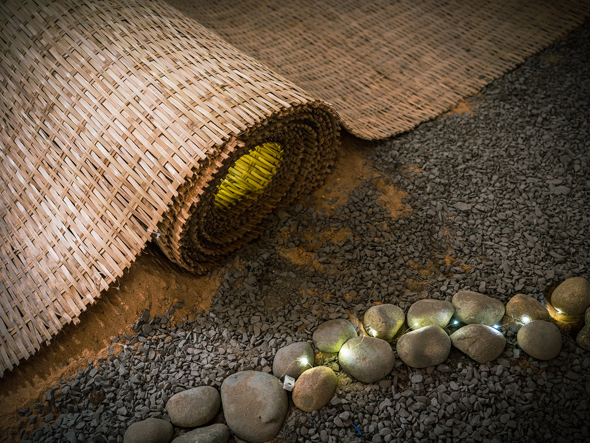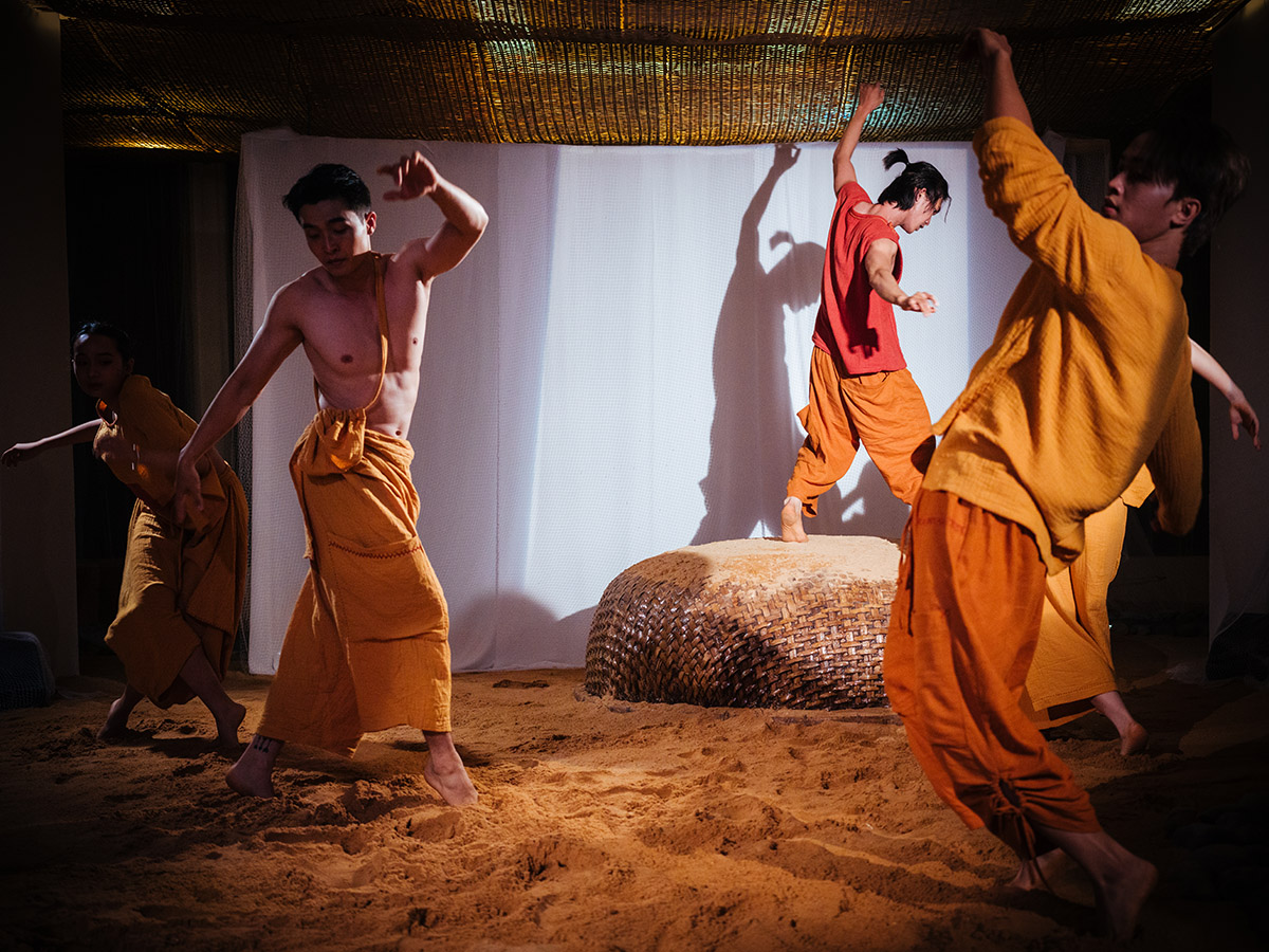 Không gian thiết kế được sắp đặt theo ý tưởng sử dụng các yếu tố của Côn Đảo như: đá, cát, thanh âm của biển, con người… Đồng thời, người xem có thể hình dung rõ nhất về bờ biển Côn Đảo qua các loại hình nghệ thuật kết hợp hài hòa như: sắp đặt, trình diễn, hội hoạ, ánh sáng, âm nhạc…