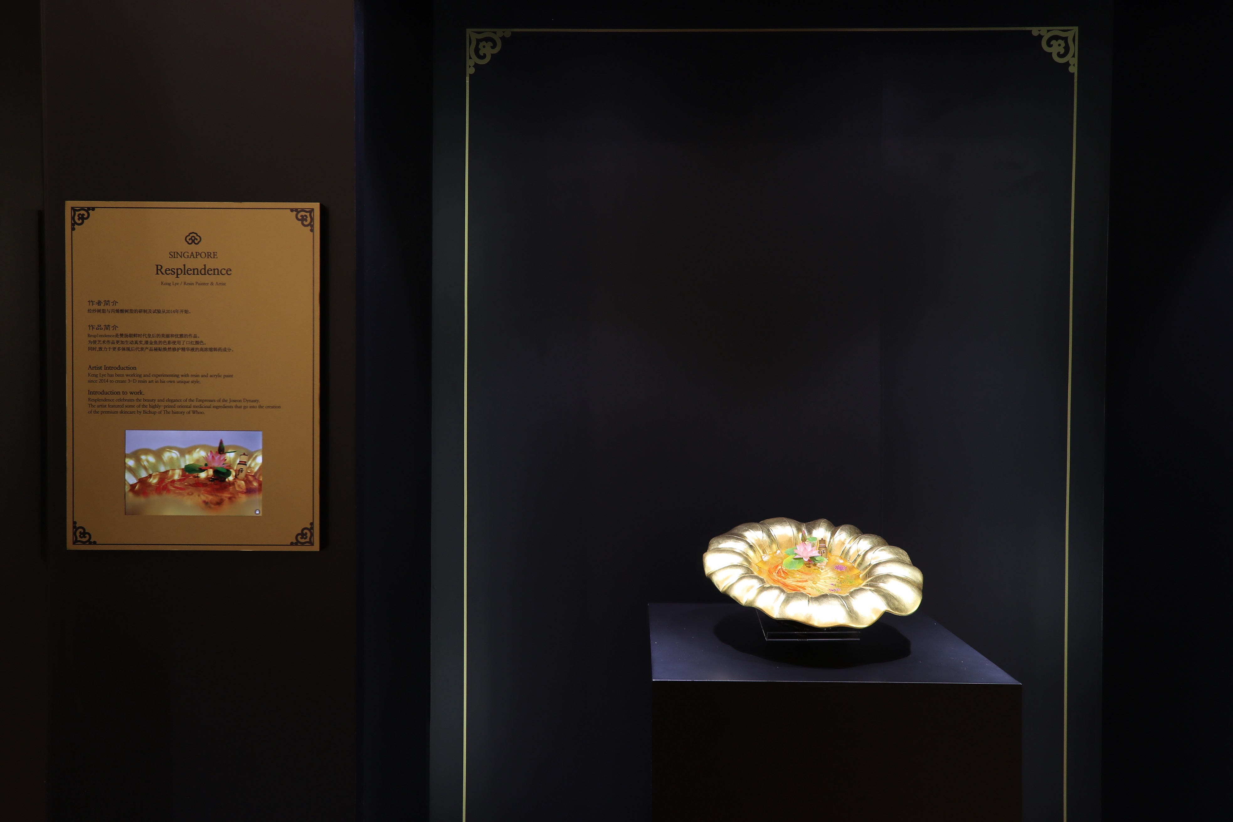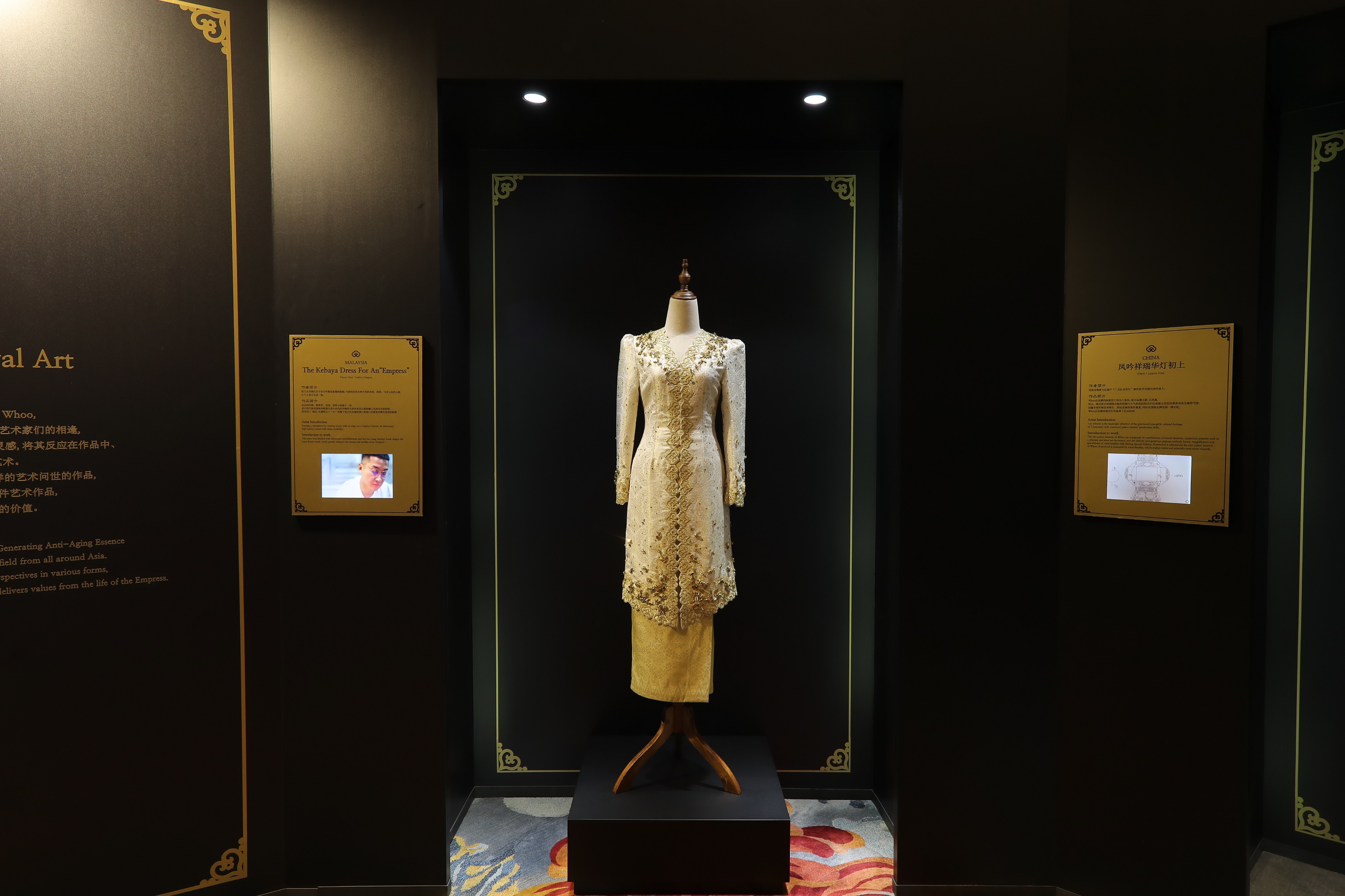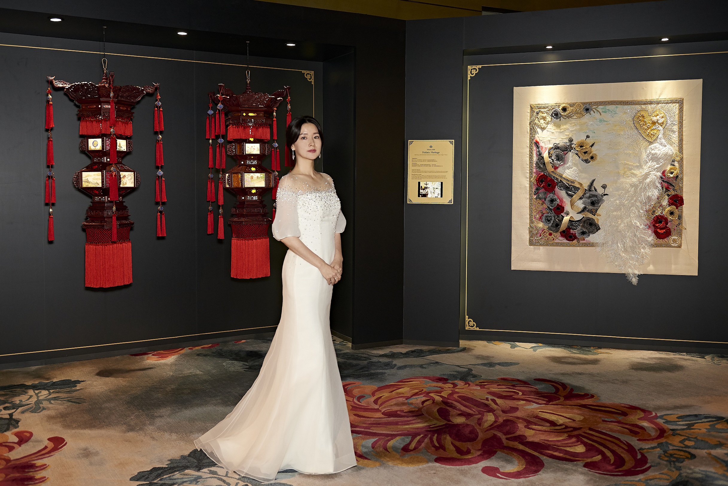 - Gương mặt đại diện của The history of Whoo, Lee Young Ae, với thần thái cao quý và nhan sắc rạng ngời của bậc vương hậu, bên các tác phẩm triển lãm tại sự kiện.