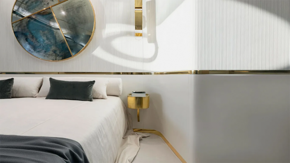 Điểm độc đáo trên thiết kế mới của nhà đóng tàu Ý chính là cấu trúc thượng tầng hoàn toàn bằng kính tạo ra để mang lại cảm giác như một căn hộ áp mái nhìn ra biển, với các cửa sổ mang phong cách hoài cổ ở thân tàu và gỗ tếch được lát ở hai bên boong sau.