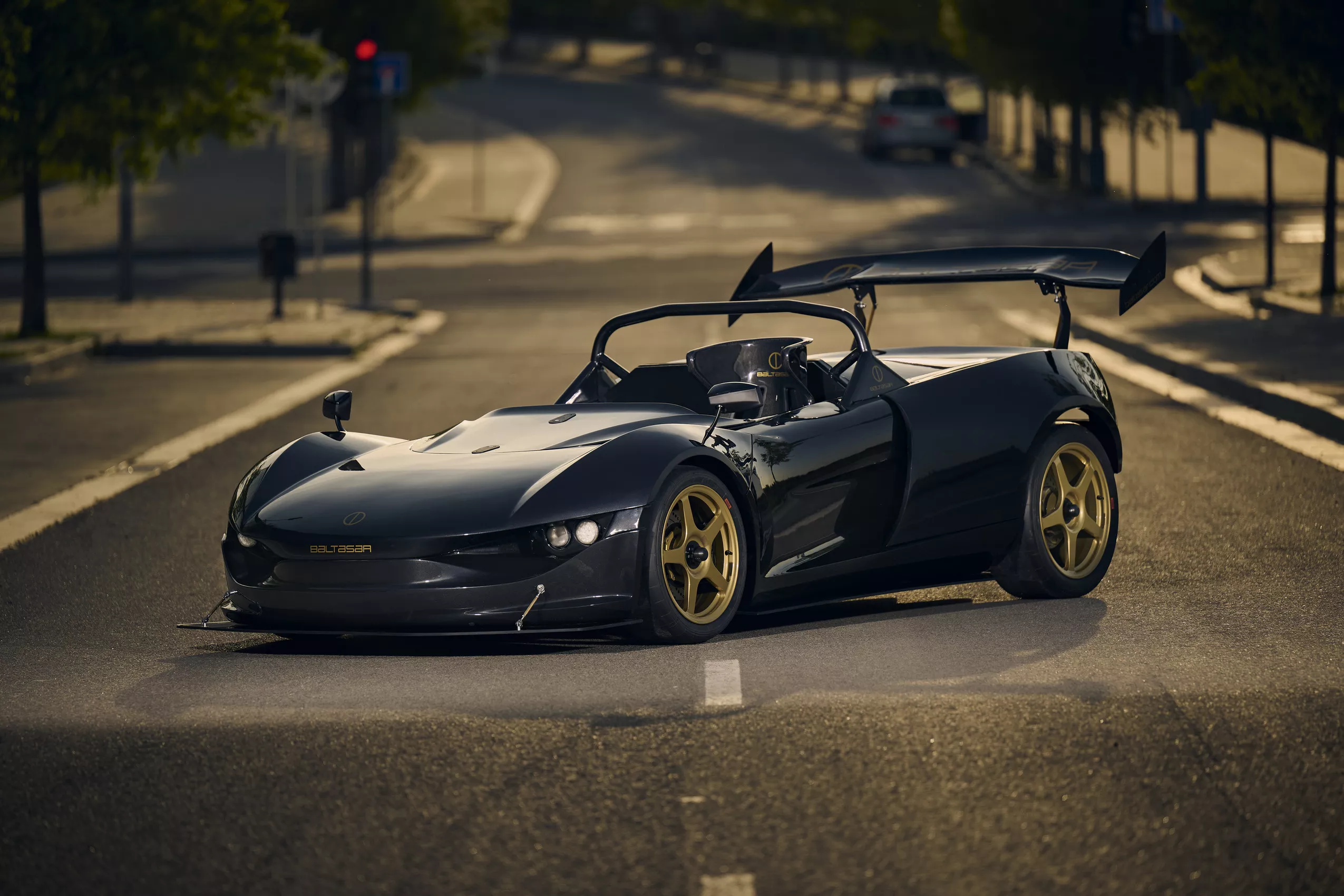 Để đảm bảo khả năng vận hành tối ưu trong môi trường khắc nghiệt của đường đua, Baltasar Revolt R được nâng cấp toàn diện về khí động học. Chiếc xe sở hữu một cánh gió sau cỡ lớn bằng carbon với thiết kế khí động học chủ động (active aerodynamic), cản trước và hốc hút gió được điều chỉnh lại để tối ưu dòng khí. Phần chắn bùn trước được thiết kế lại gọn gàng, đi cùng bộ khuếch tán sau lớn giúp tăng lực ép và độ ổn định khi vào cua tốc độ cao. Bộ mâm sơn vàng thể thao đi cùng lốp trơn cũng góp phần tôn lên vẻ ngoài quyết liệt, không khoan nhượng.